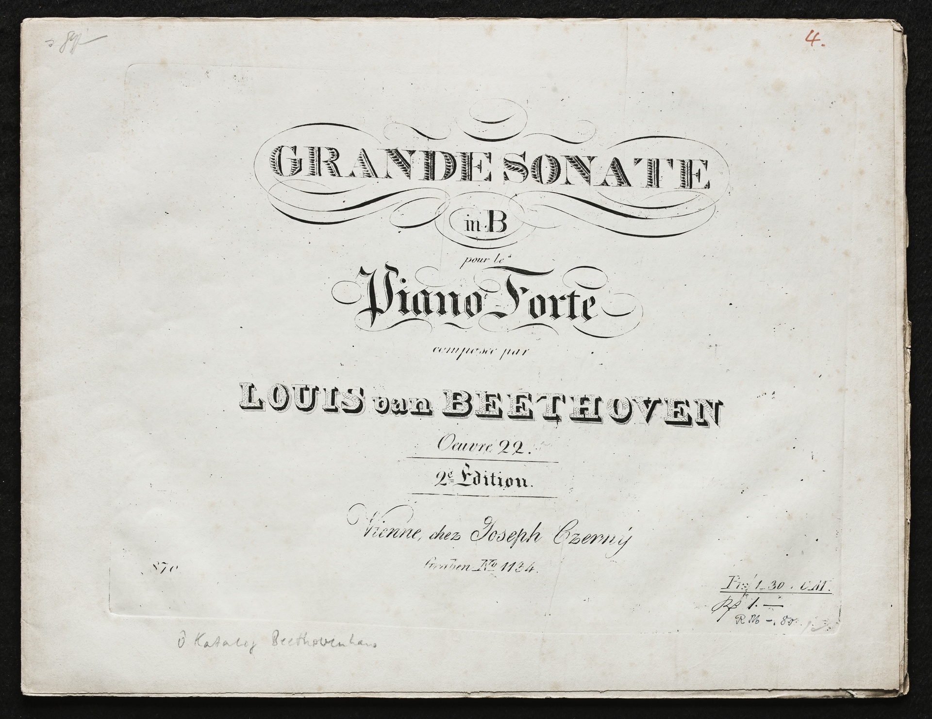 Ludwig van Beethoven, Sonate für Klavier (B-Dur) op. 22, Czerný, 870