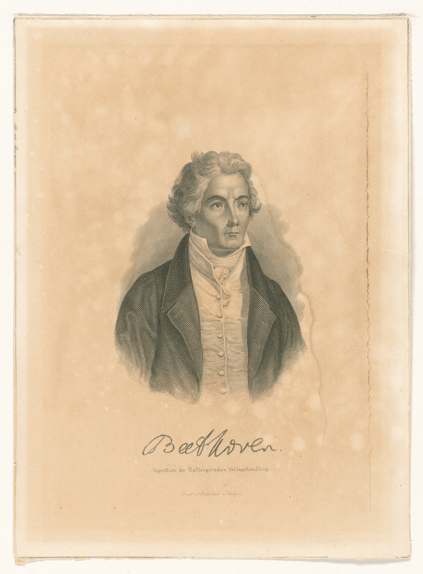 Ludwig van Beethoven - Stahlstich nach einer Zeichnung von Johann Stephan Decker von 1824, erschienen bei Hallberger in Stuttgart, 1846