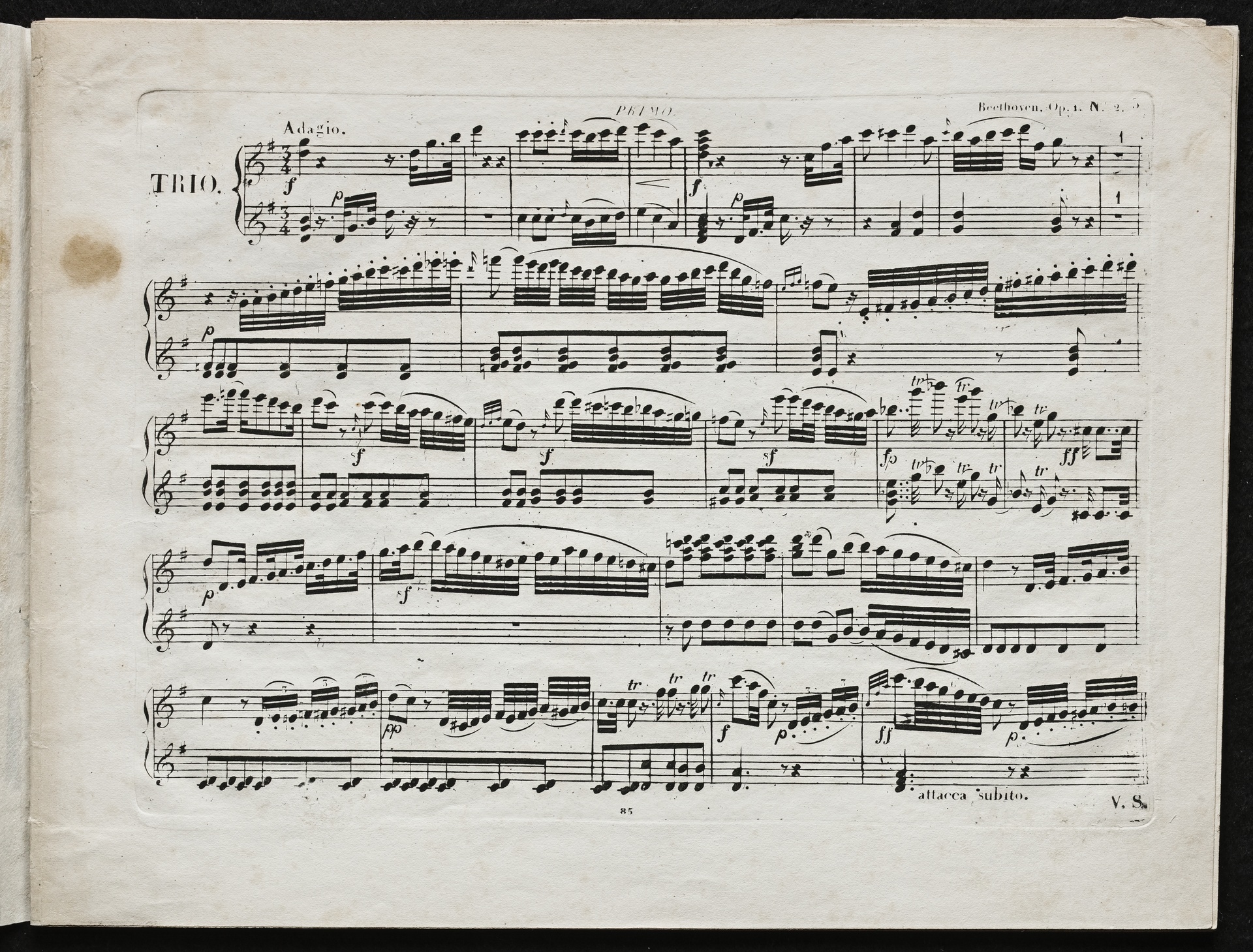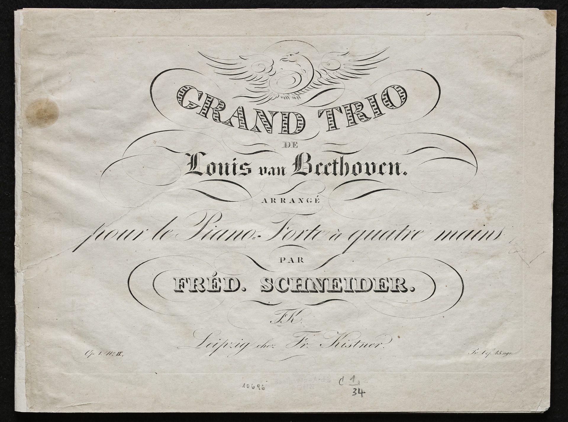 Ludwig van Beethoven, Trio für Klavier, Violine, Violoncello (G-Dur) op. 1, 2, Bearbeitung für Klavier zu 4 Händen von Friedrich Schneider, Kistner, 85
