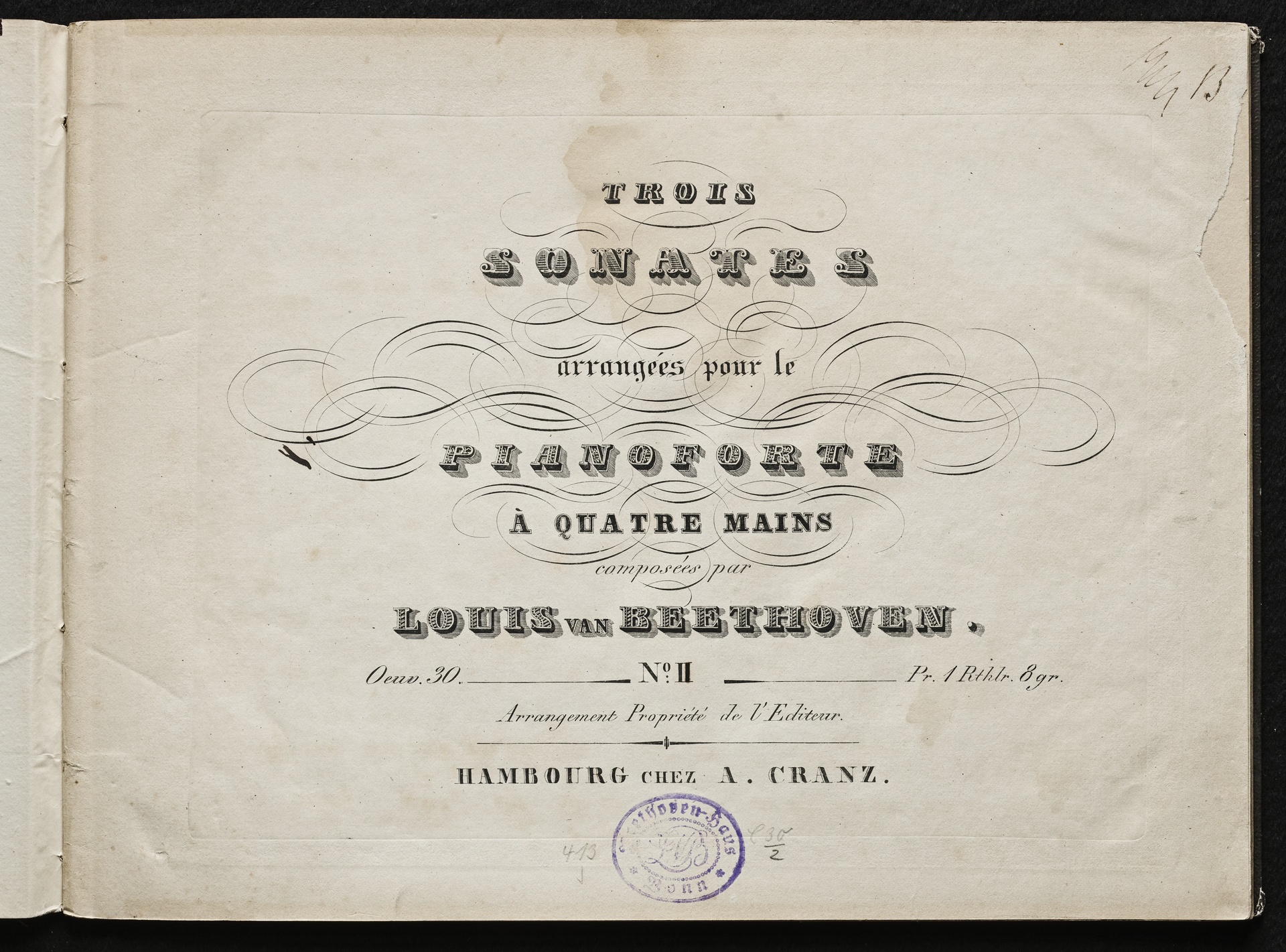 Ludwig van Beethoven, Sonate für Klavier und Violine (d-Moll) op. 30, 2, Bearbeitung für Klavier zu 4 Händen, Cranz