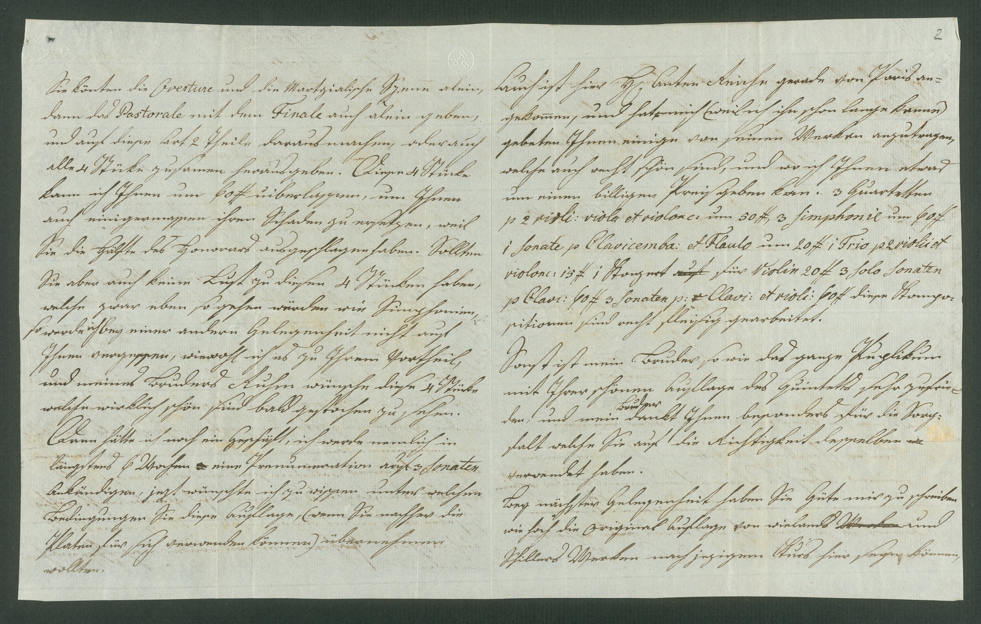 Schließlich berichtet Karl vom großen Anklang, den B & H Ausgabe des Streichquintetts op. 29 in Wien finde und weist auf eine Ankündigung zu op. 29 im "Wiener Diarium" hin. (J.R.)