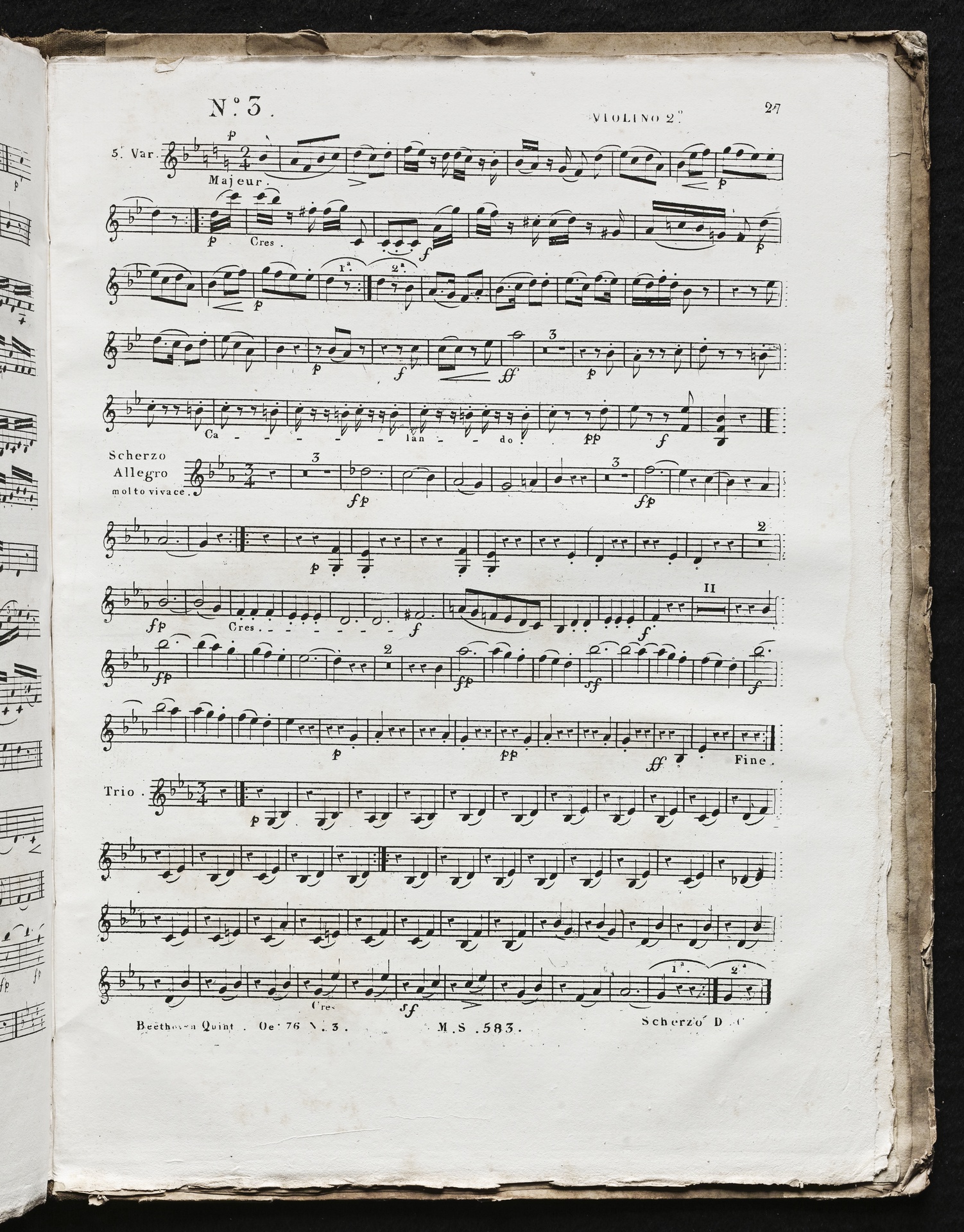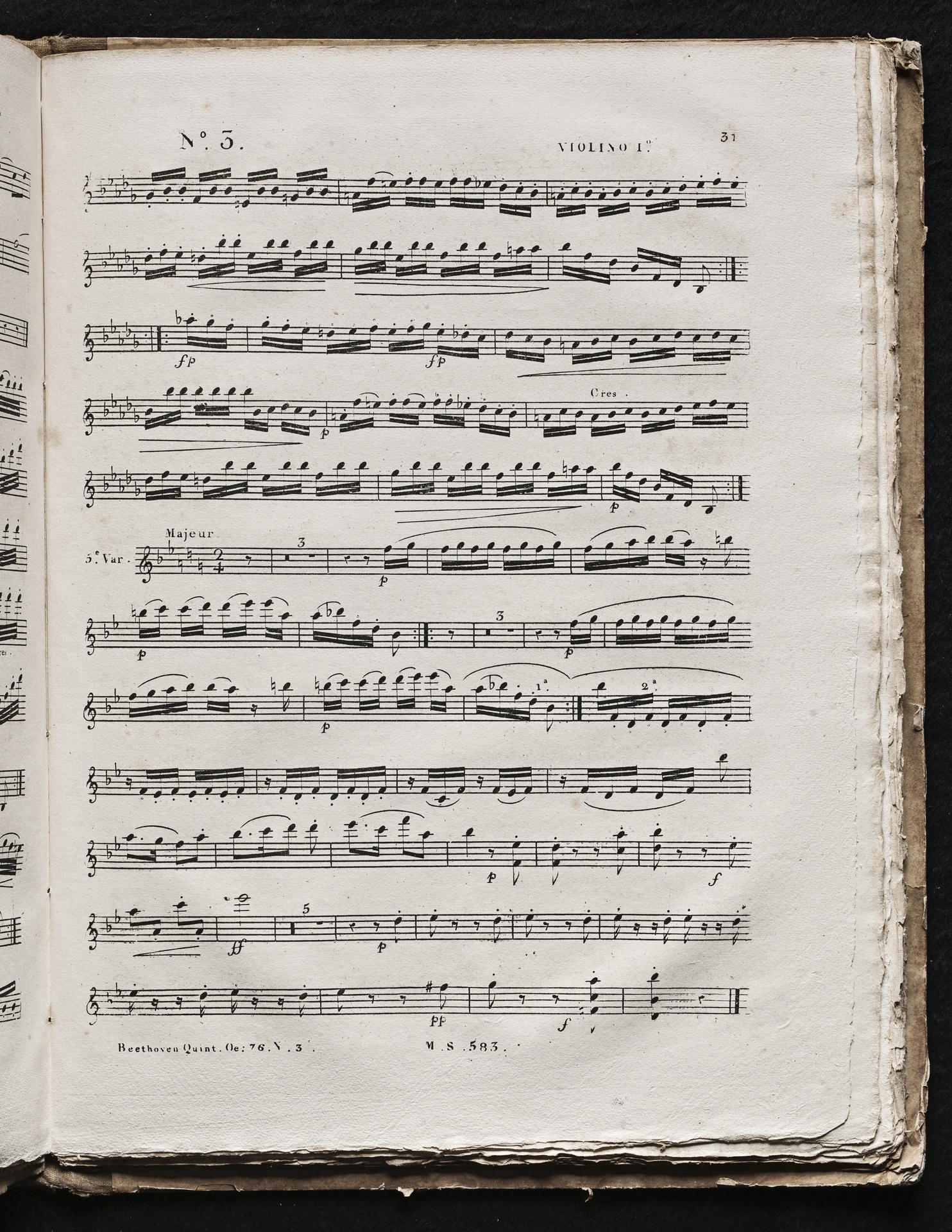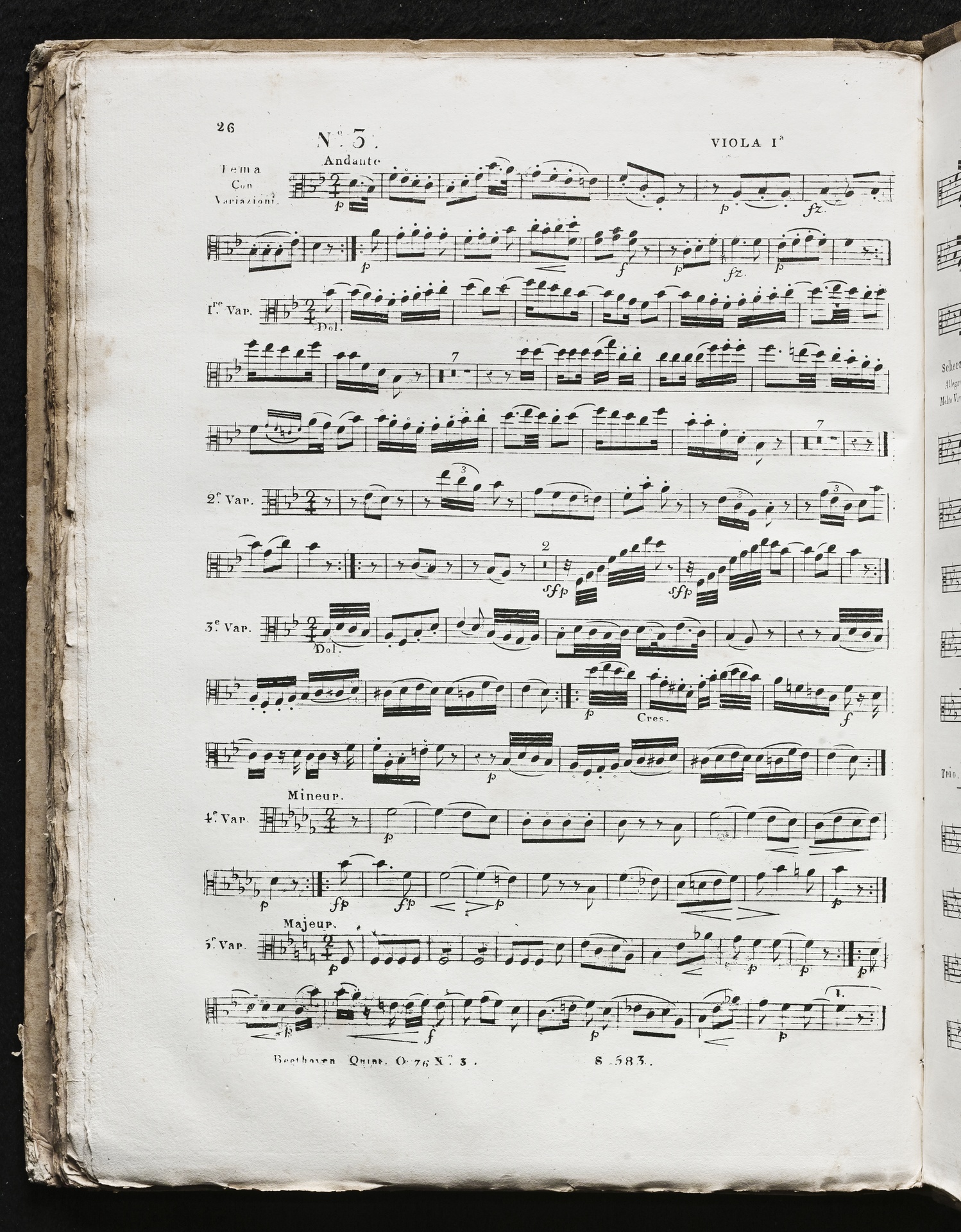 Ludwig van Beethoven, Septett für Violine, Viola, Violoncello, Kontrabass, Klarinette, Horn und Fagott (Es-Dur) op. 20, Bearbeitung für 2 Violinen, 2 Violen, Violoncello, Stimmen, Société pour la Publication à bon Marché de Musique Classique et Moderne, 583