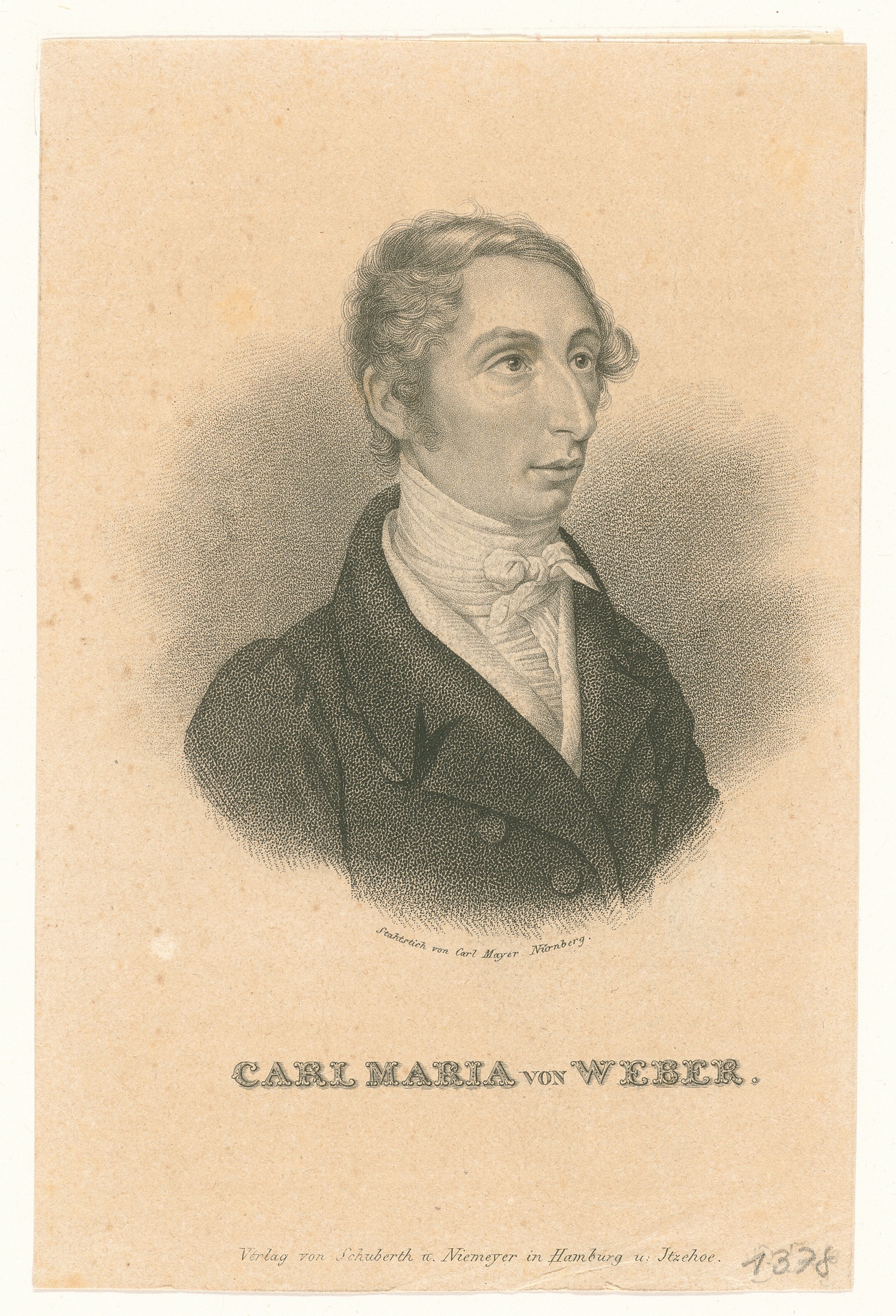 Carl Maria von Weber (1786-1826) - Stahlstich von Carl Mayer, Nürnberg, wohl nach einem Gemälde von Carl Christian Vogel von Vogelstein aus dem Jahr 1823, erschienen bei Schuberth und Niemeyer in Hamburg und Itzehoe, um 1830