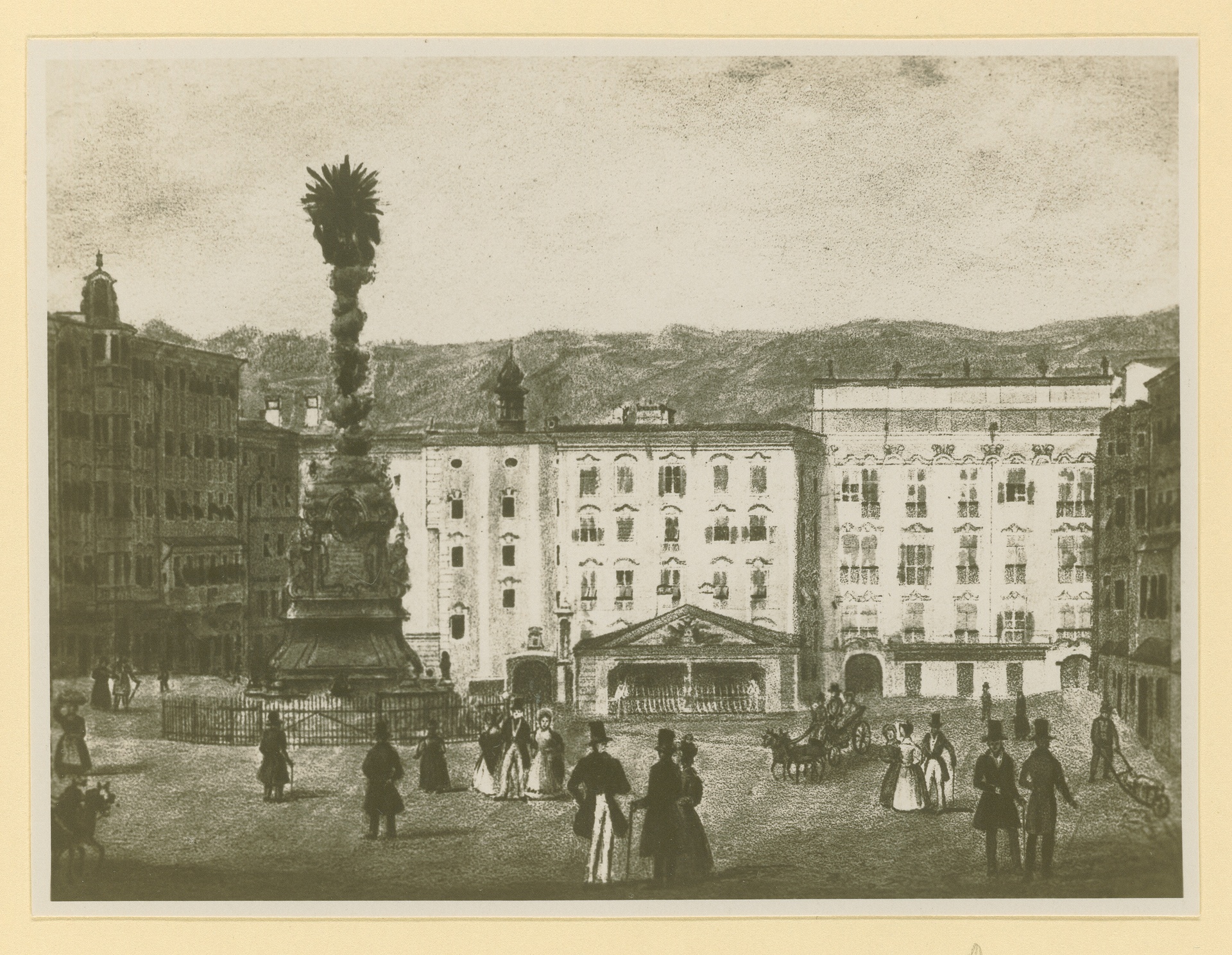 Der Hauptplatz und die "Wasserapotheke" in Linz a.d. Donau, um 1840 - Fotografie eines Gemäldes von Josef Sterrer d.Ä