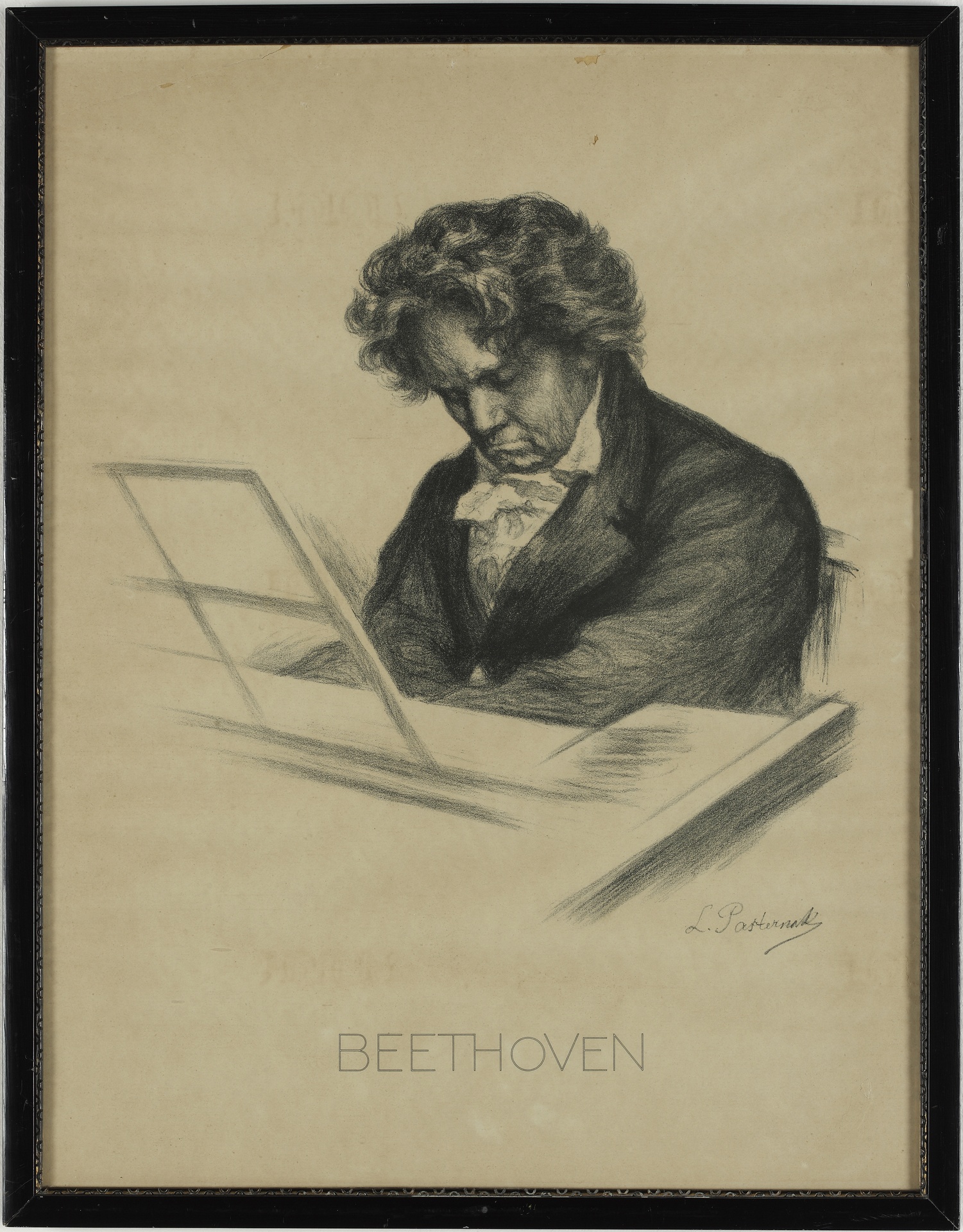Beethoven am Klavier - Lithographie oder Reproduktion einer Lithographie von Leonid Osipovič Pasternak nach einer eigenen Zeichnung, 1. Hälfte des 20. Jahrhunderts