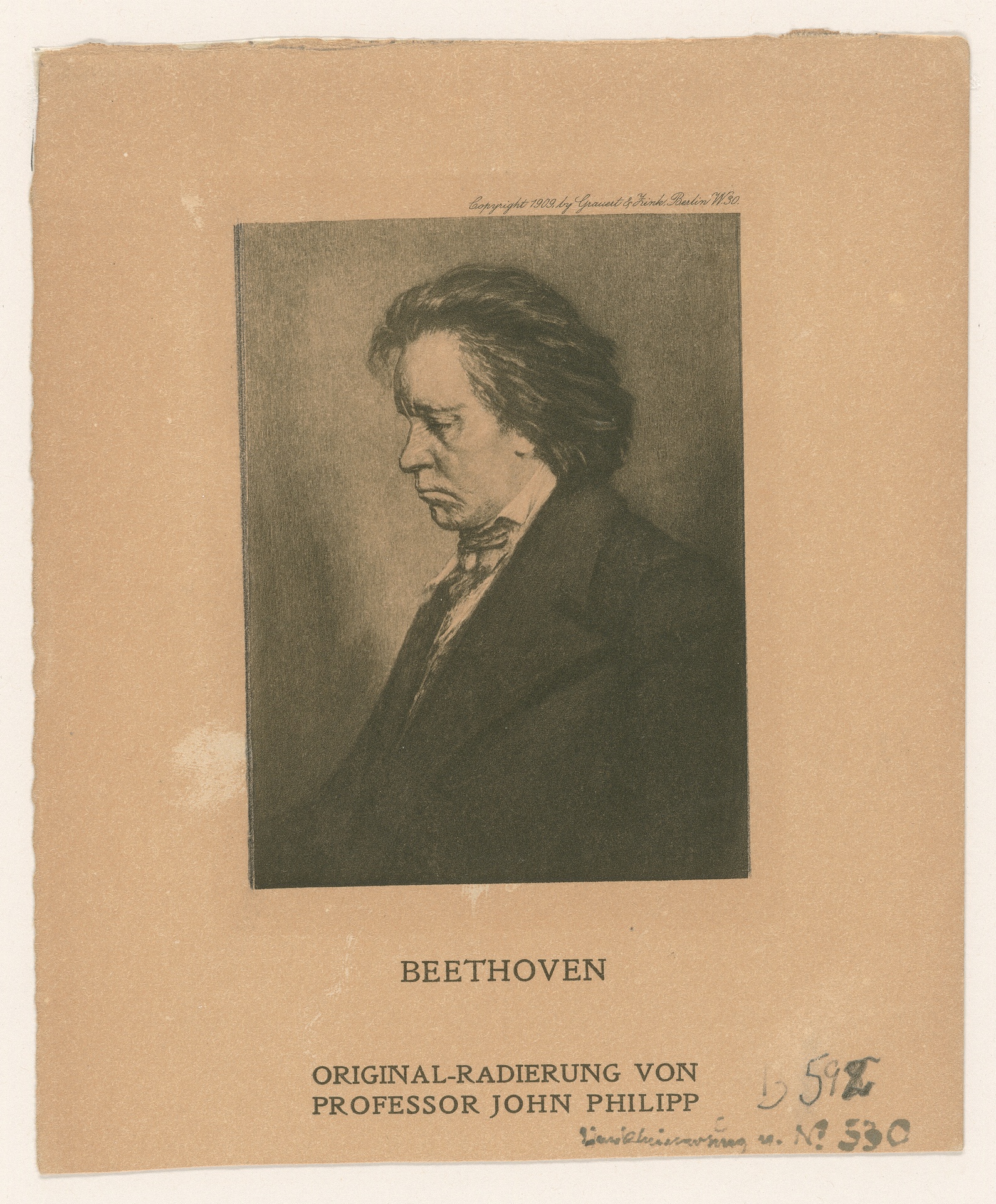 Ludwig van Beethoven - Radierung von John Philipp nach einer eigenen Zeichnung, erschienen bei Grauert & Zink, Berlin, 1909