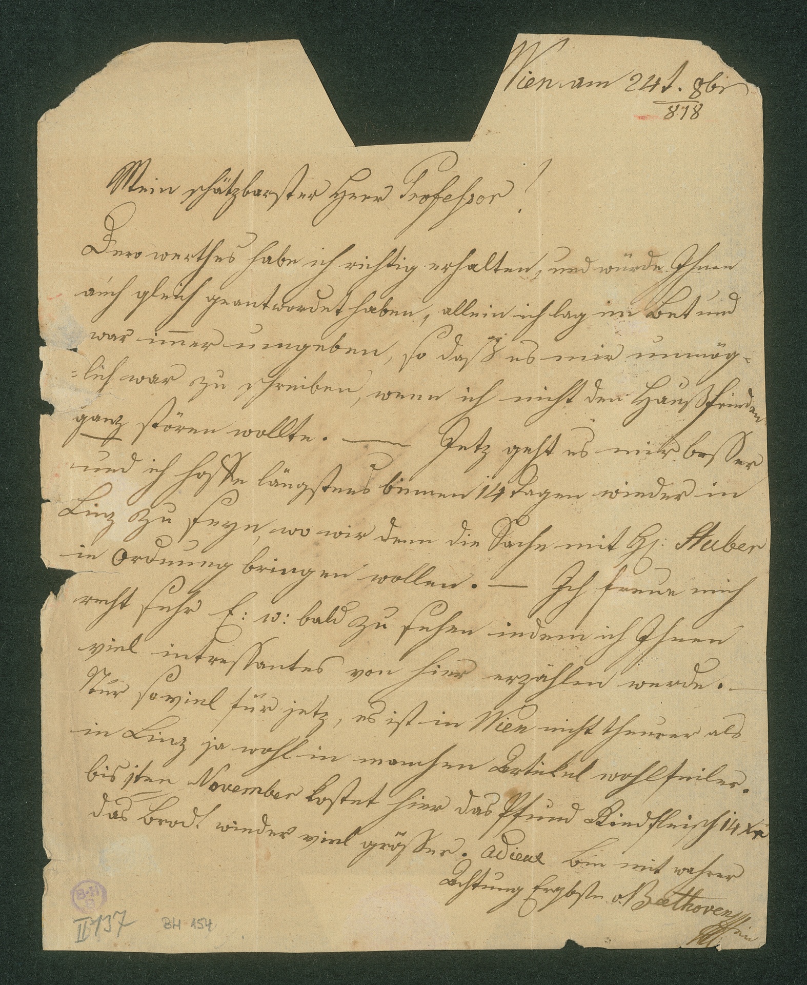Nikolaus Johann van Beethoven, Brief an Rechtsanwalt Weiss in Linz, Wien, 24. Oktober 1818, Autograph