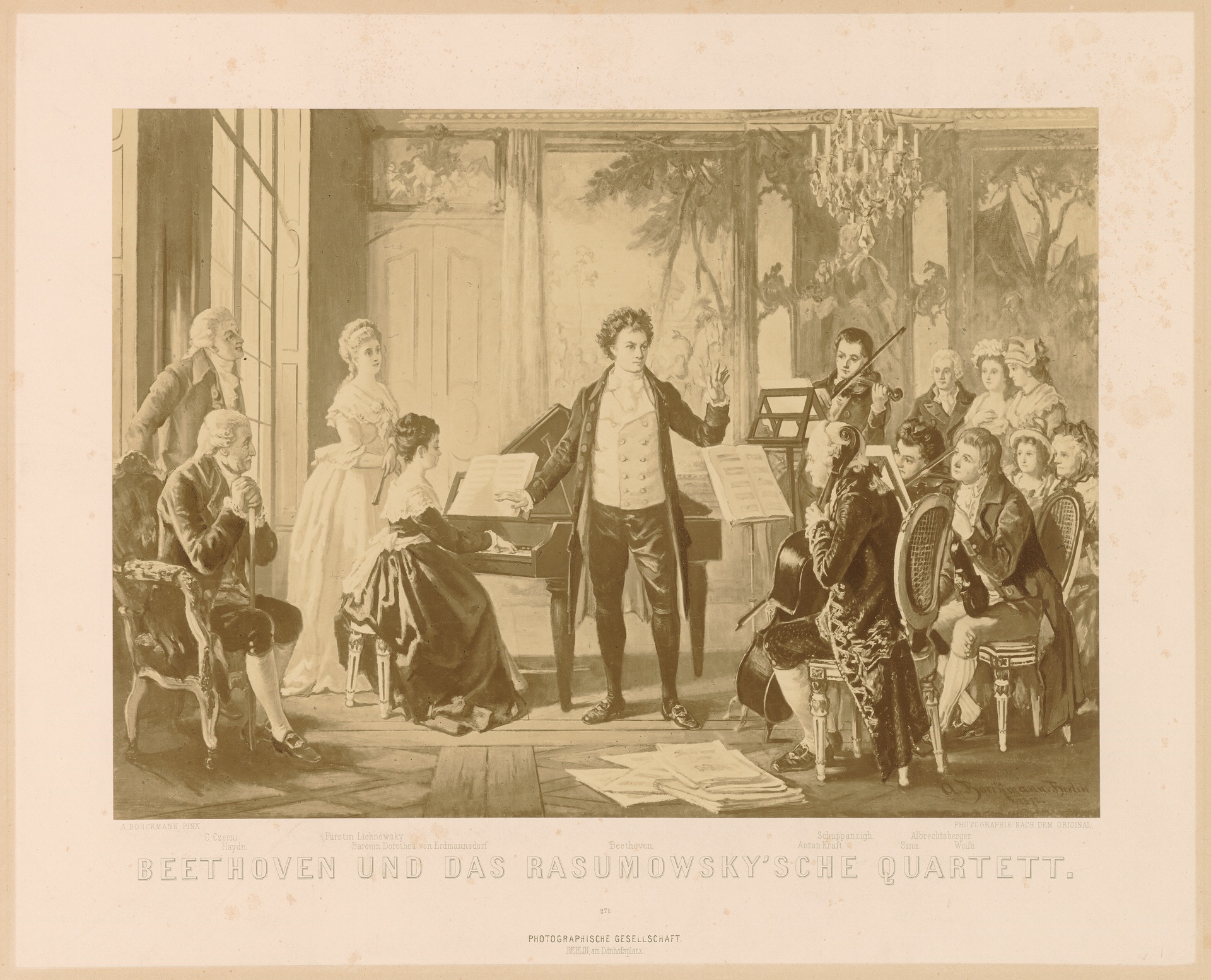 "Beethoven und das Rasumowsky'sche Quartett" - Gemälde von August Borckmann von 1872, Fotografie der Photographischen Gesellschaft, Berlin, 1880-1890