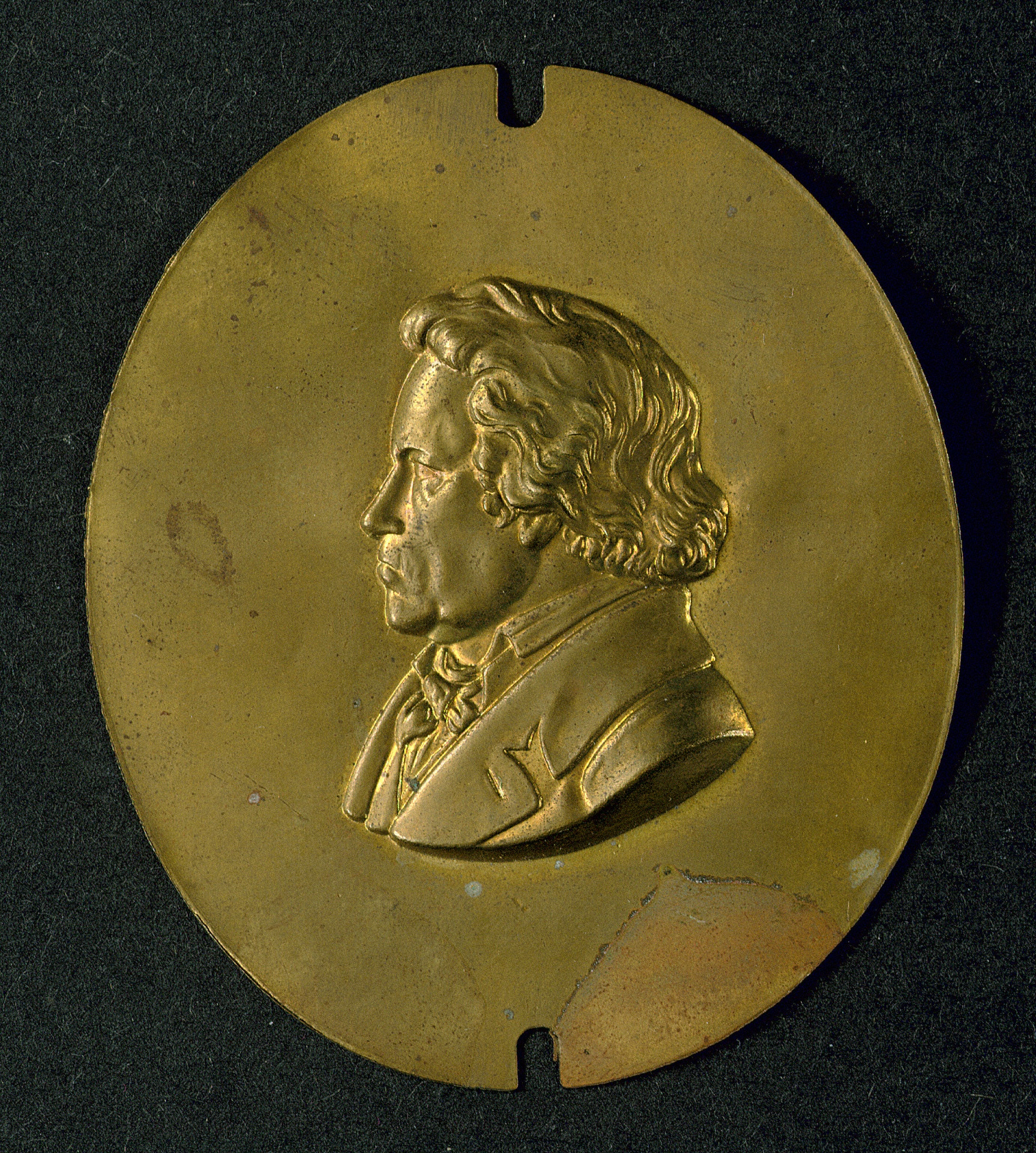 Hohlprägung eines Beethoven-Kopfes für ein Kinderspiel - Anonymes Messingrelief