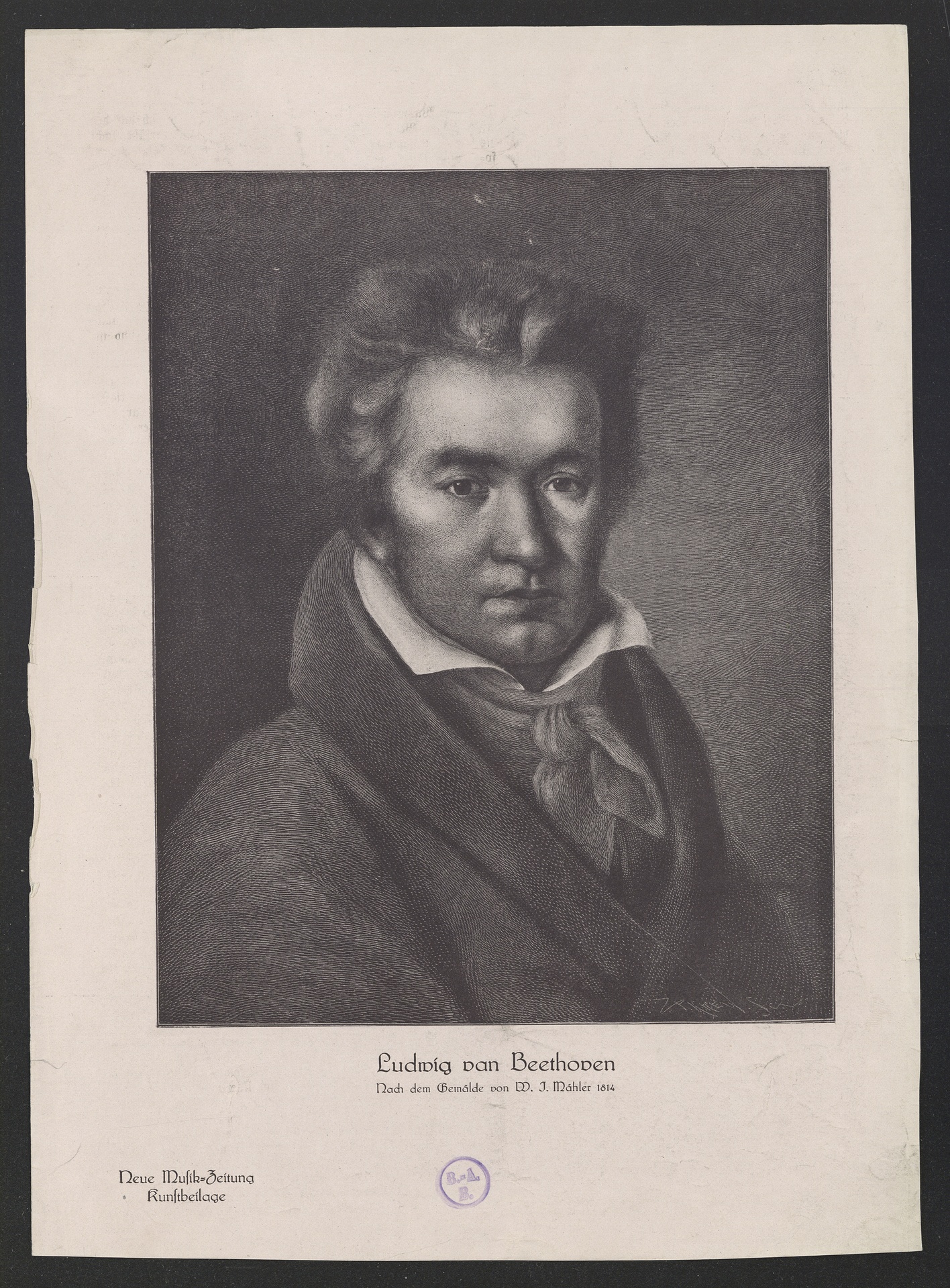 Ludwig van Beethoven - Holzstich nach dem Gemälde von Willibrord Joseph Mähler 1814, Reproduktion, Stuttgart und Leipzig, 1920