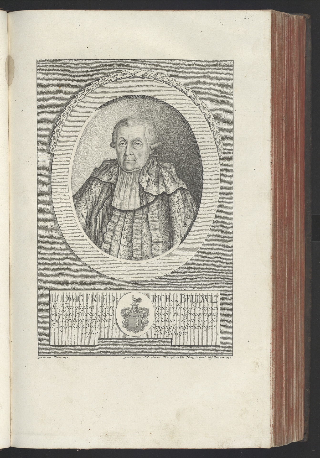 Ludwig Friedrich von Beulwitz (1726-1796), Jurist - Stich von Paul Wolfgang Schwarz nach einem Gemälde von Johann Friedrich Beer aus dem Jahr 1790, Frankfurt, 1792