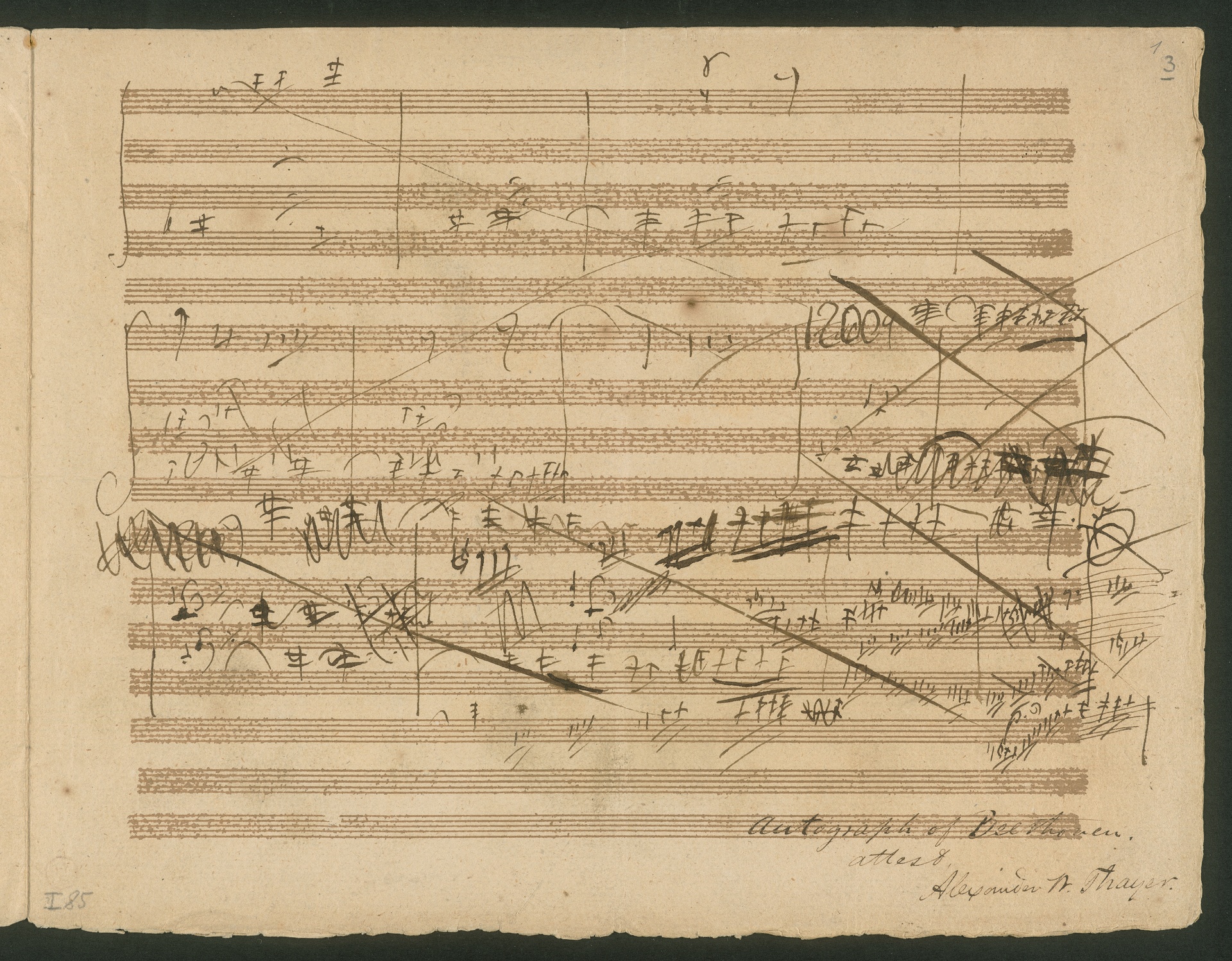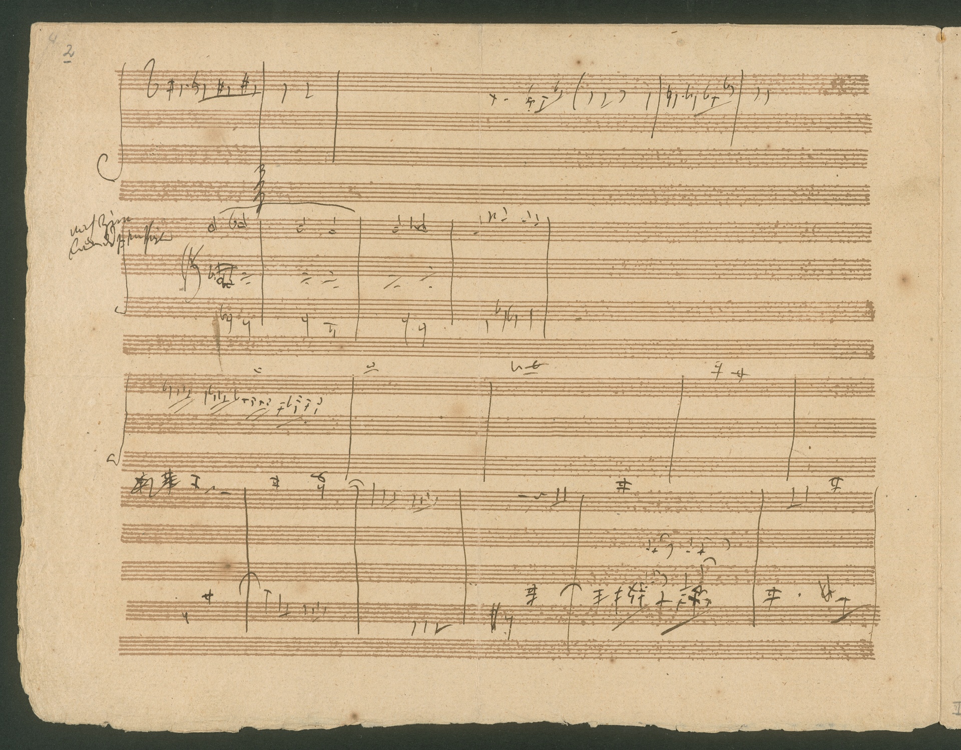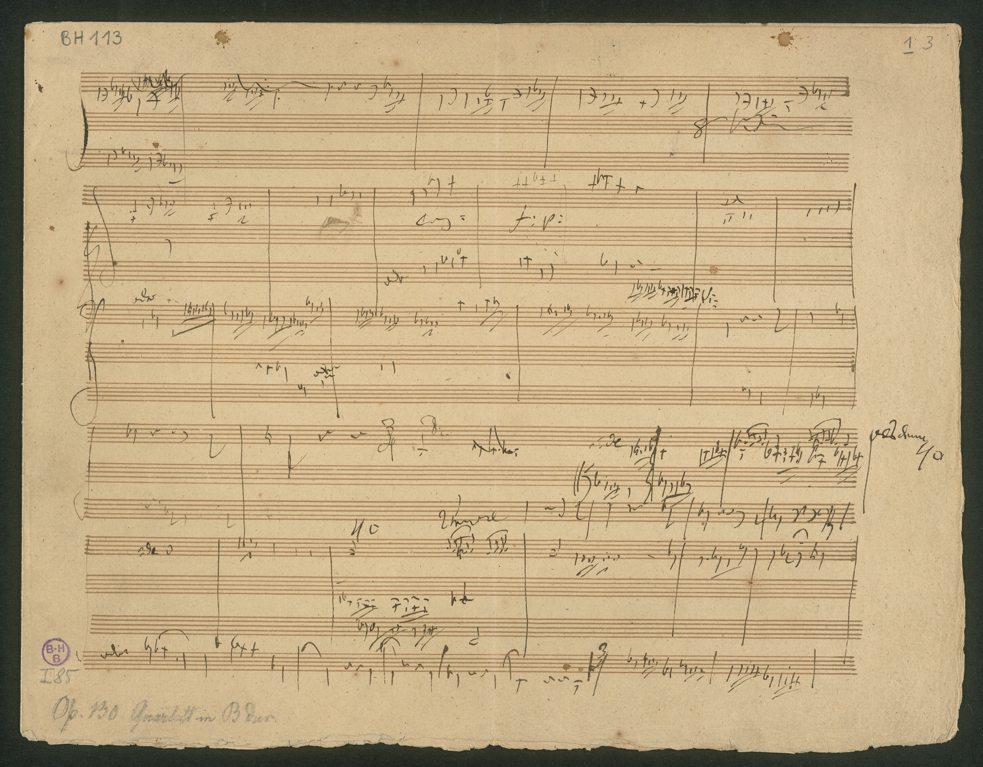 Ludwig van Beethoven, Skizzenblatt zum Streichquartett op. 130, 1. Satz, Partiturskizze, Autograph