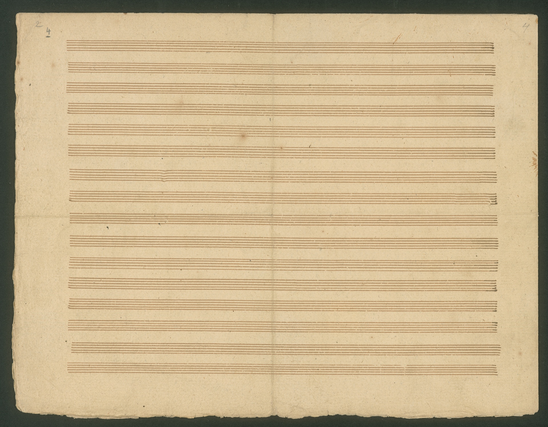 Wir sehen eine autographe Partiturskizze zum 1. Satz des Streichquartetts op. 130. Obwohl Beethoven schon in früheren Jahren vereinzelt Werke auch in Partitur skizzierte, treten Partiturskizzen systematisch und in großem Umfang erst mit den späten Streichquartetten auf, genauer gesagt ab op. 127, also ab 1822. Je nachdem wie weit die Arbeit bereits fortgeschritten ist, erwecken solche Partiturskizzen bisweilen schon den Eindruck eines Autographs. Im Gegensatz zu "normalen" Skizzen, die Ideen und Melodieverläufe in einer Hauptstimme in einem, maximal zwei Systemen festhalten, setzt Beethoven bei einer Partiturskizze schon alle Instrumente untereinander. Ziel dabei ist, nicht nur die horizontale, melodische Linie zu finden, sondern auch die Vertikale, die Harmonie und Faktur des Satzes zu überblicken und auszuprobieren. (J.R.)