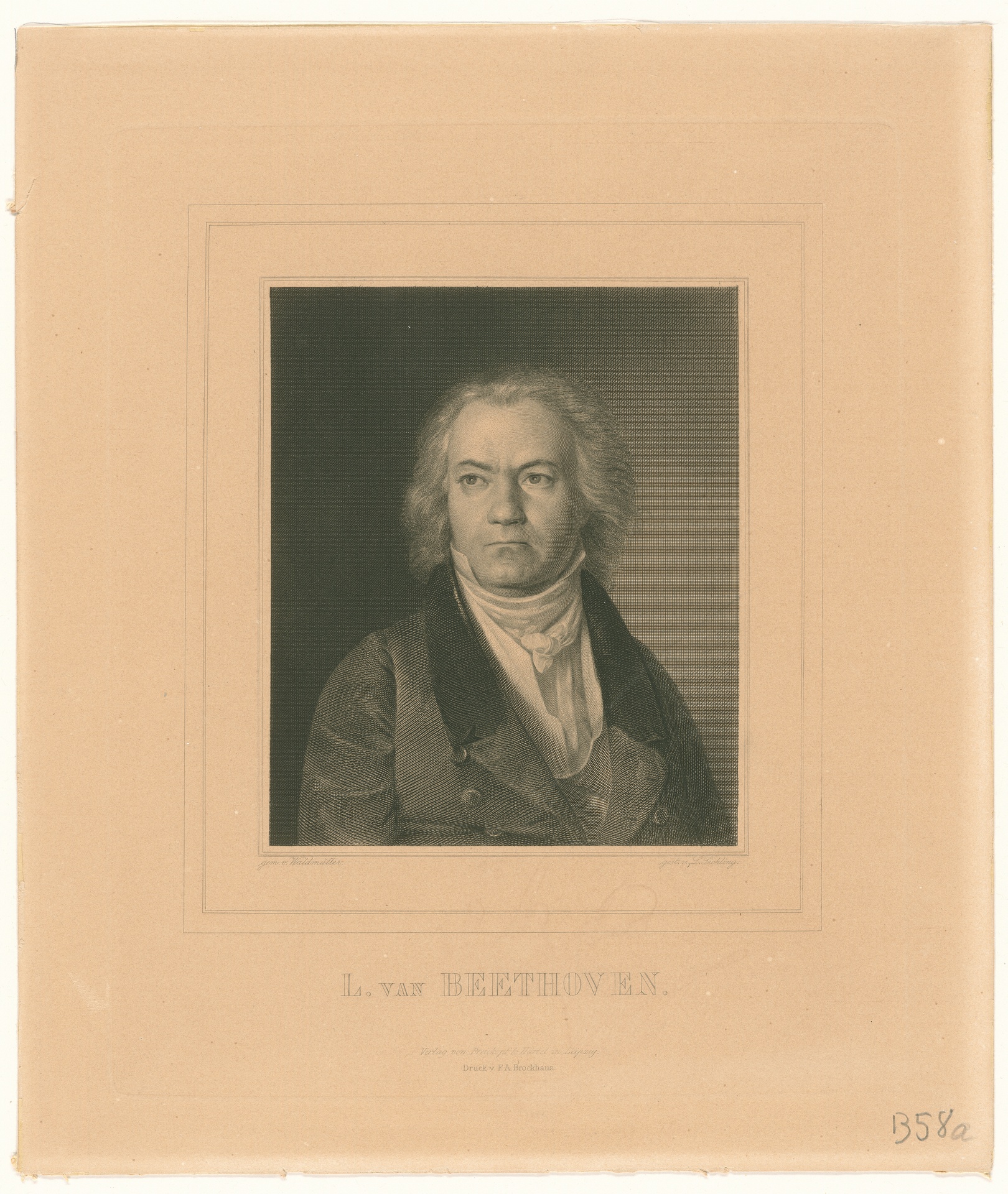Ludwig van Beethoven - Stich von Lazarus Gottlieb Sichling nach einem Gemälde von Ferdinand Georg Waldmüller von 1823, Leipzig, Mitte 19. Jahrhundert