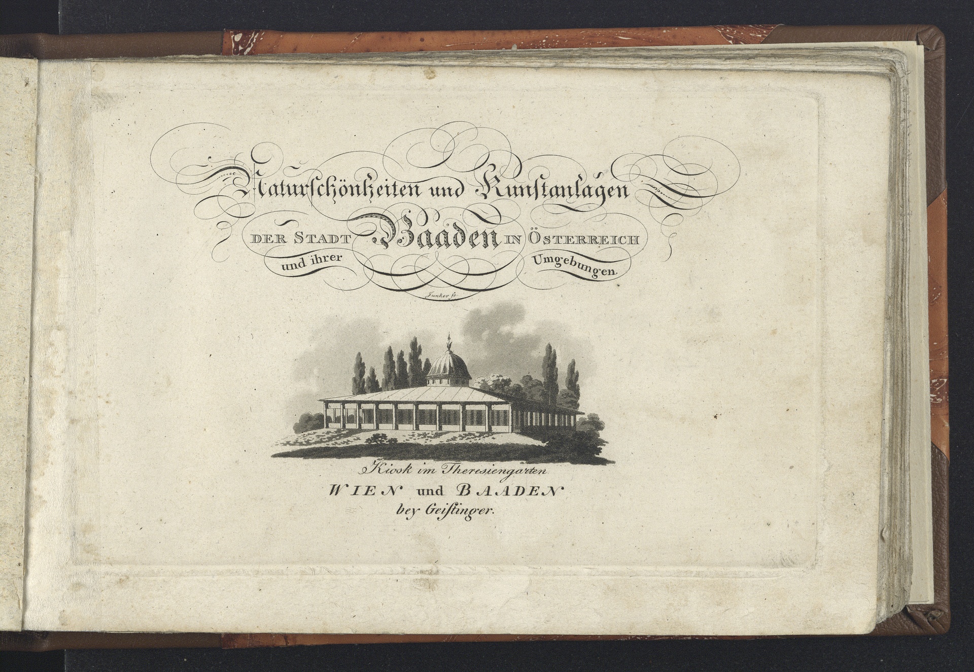 Baden, Kiosk im Theresiengarten - Aquatinta-Radierung von Christian Junker, erschienen bei Geistinger, Wien und Baden, 1803