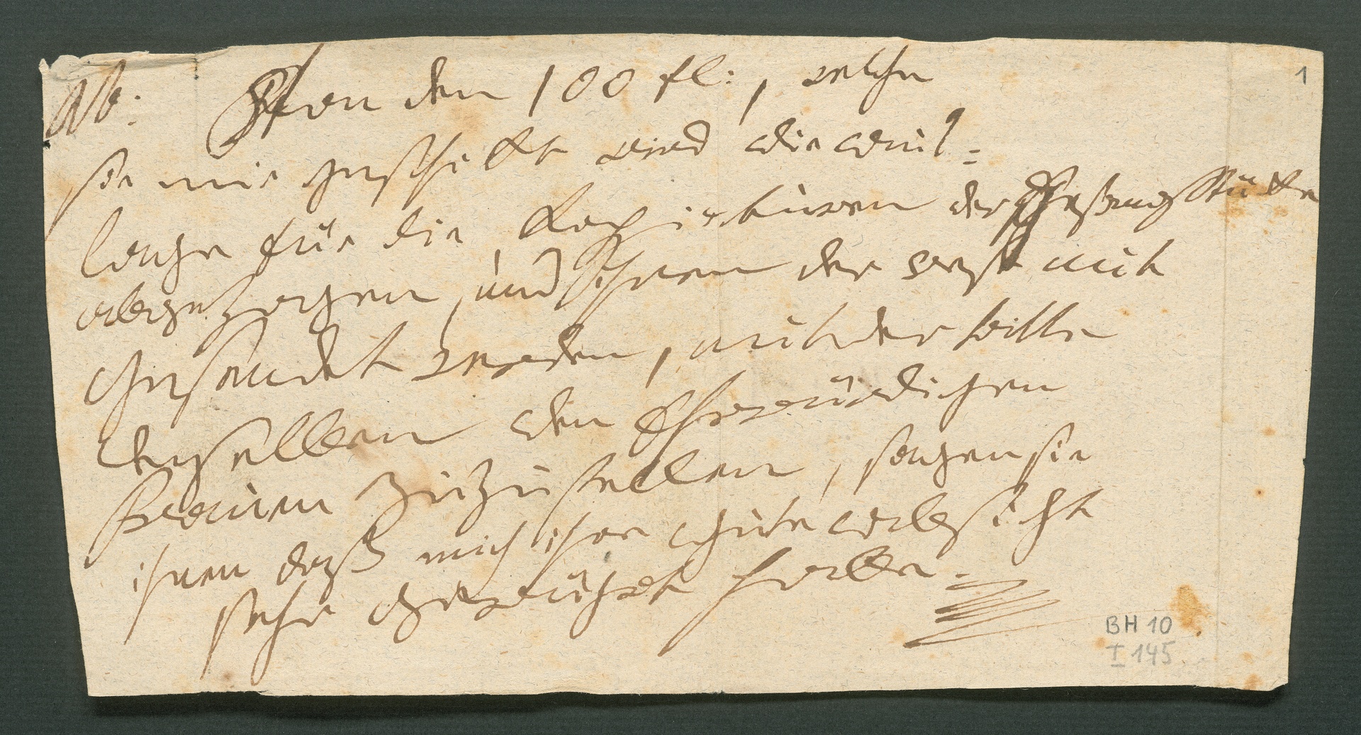 Für ein von Joseph von Varena organisiertes Wohltätigkeitskonzert der Ursulinen in Graz hatte Beethoven Aufführungsmaterial zur Verfügung gestellt. Zur Deckung seiner Unkosten hatten ihm die Veranstalter 100 Gulden zugeschickt. Im vorliegenden "nota bene" betont Beethoven, er wolle von den 100 Gulden lediglich die Auslagen für die Kopierkosten abziehen und den Rest wieder den Ursulinen zukommen lassen, da ihn "ihre Gute Absicht sehr gerührt" habe. (J.R.)