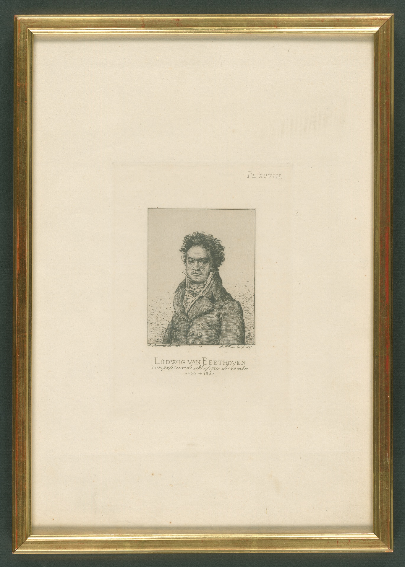 Der Entschluß des Verlages, dieses Portrait drucken zu lassen, zeigt die enorme Popularität Beethovens zu dieser Zeit. Sie beruhte vor allem auf dem Erfolg der beiden Gelegenheitskompositionen, die Beethoven anläßlich des Wiener Kongresses verfaßt und aufgeführt hatte: der Kantate "Der glorreiche Augenblick" op. 136 und der Sinfonie "Wellingtons Sieg oder die Schlacht bei Vittoria" op. 91. (S.B.)