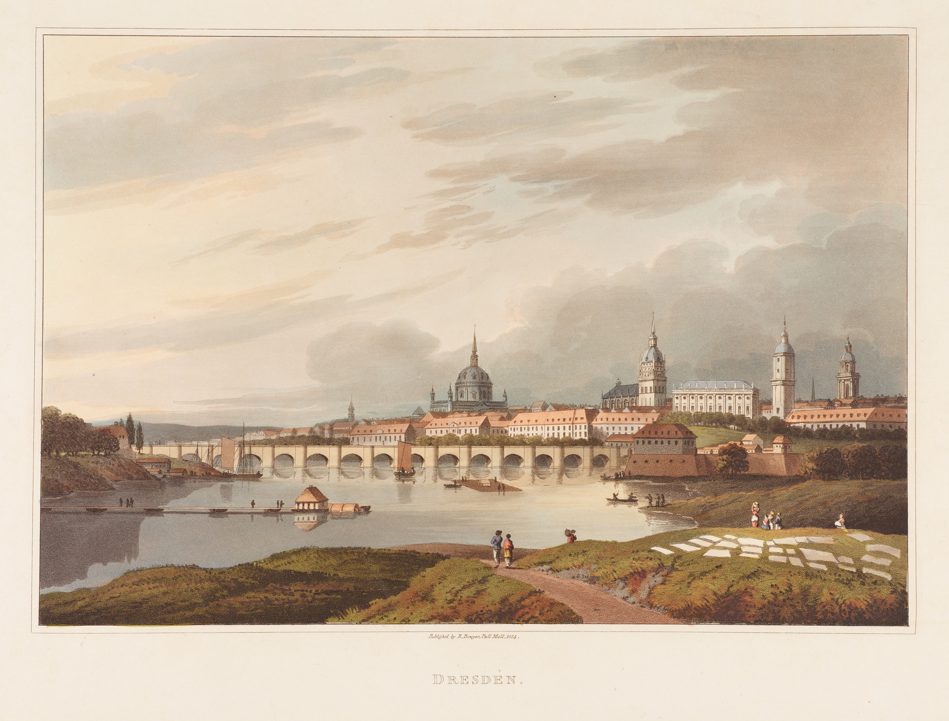 Blick auf Dresden mit der Elbbrücke - Anonymer Stich, veröffentlicht bei Robert Bowyer, London, 1814