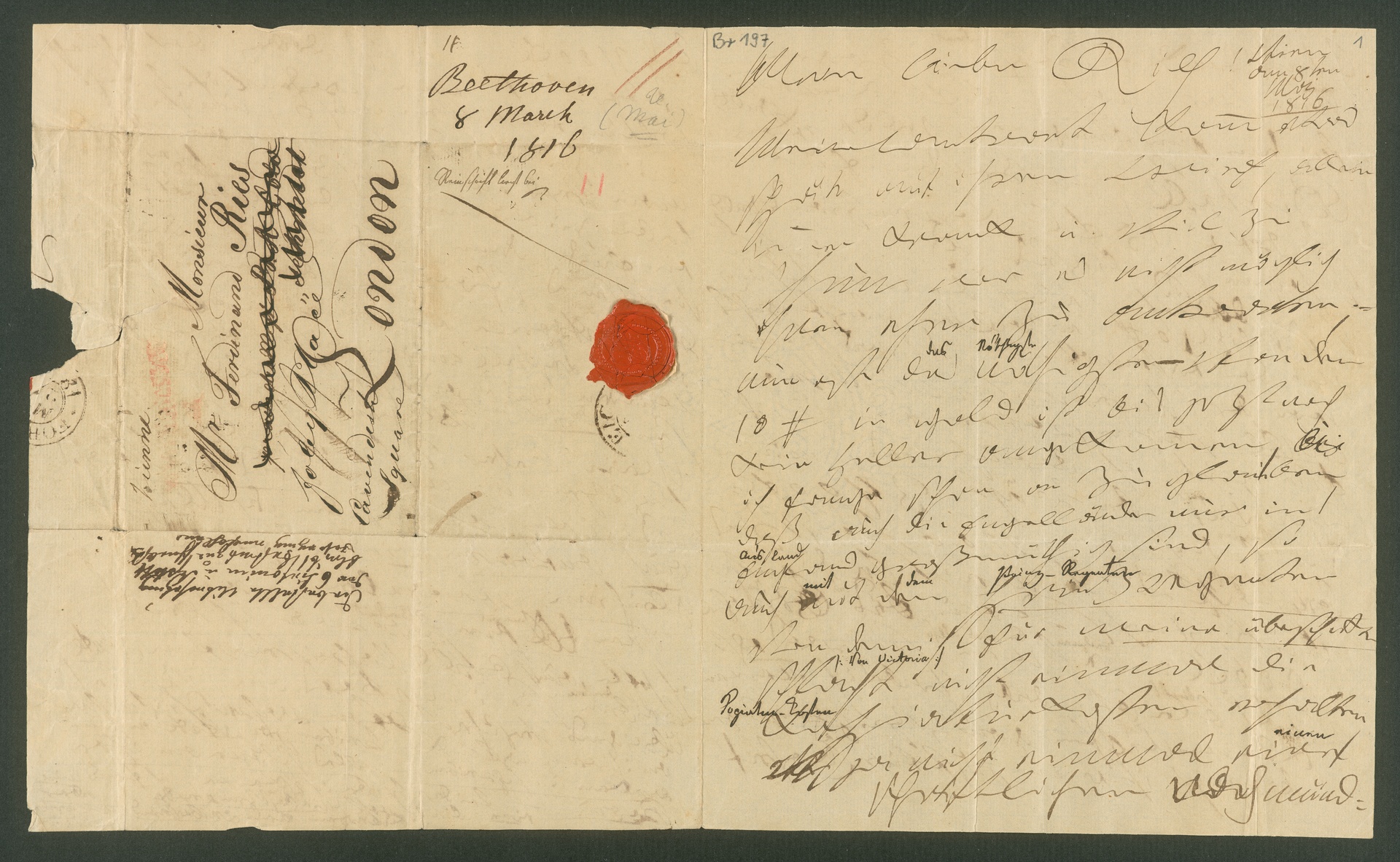 Ludwig van Beethoven, Brief an Ferdinand Ries in London, Wien, 8. Mai 1816, Autograph