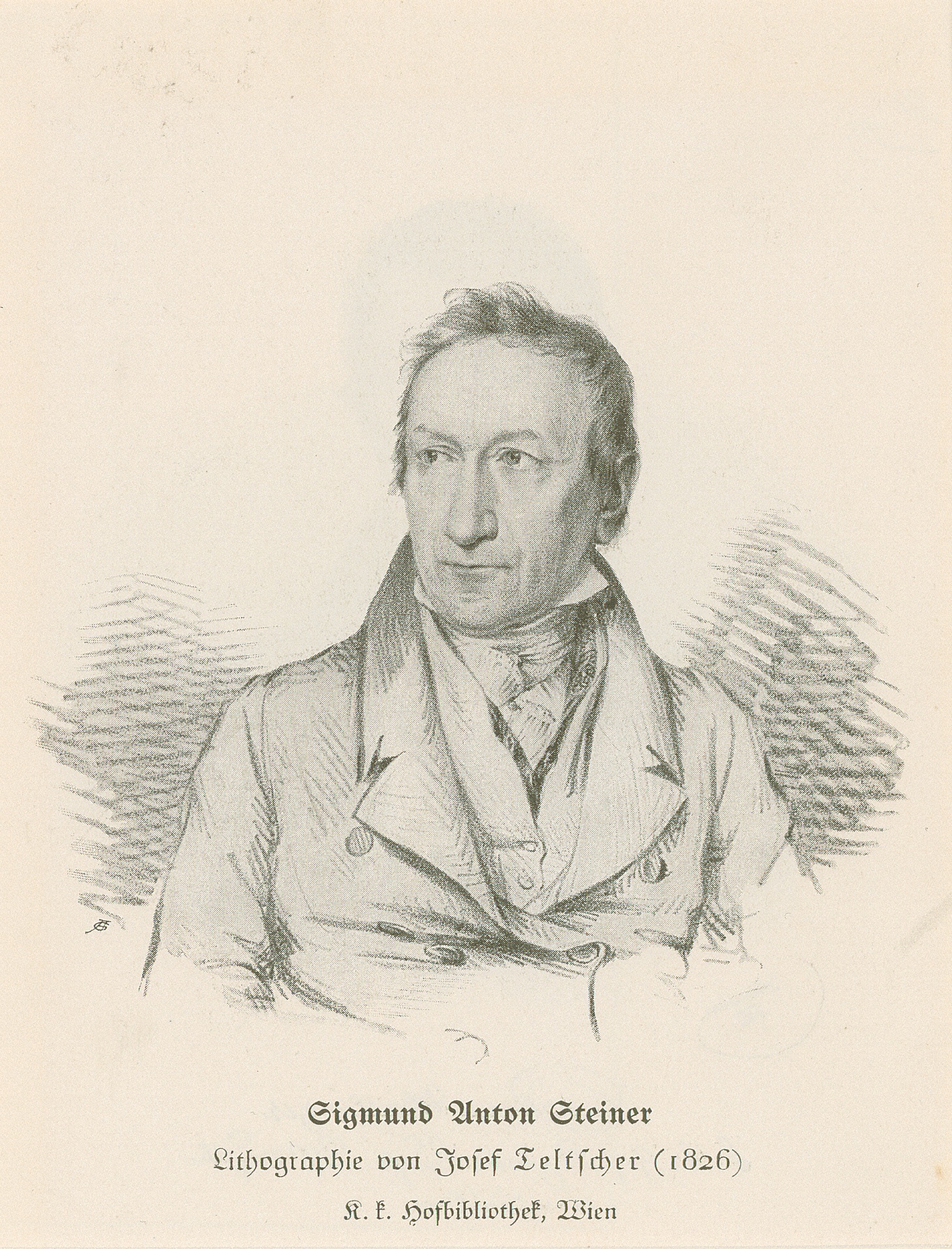 Sigmund Anton Steiner war ein in Geschäftsdingen geschickter und begabter Mann, der vom Schreiber und Sekretär bis zum Verlagsbesitzer aufstieg. Im Jahr 1803 erwarb er die Druckerei, die der Erfinder der Lithographie Alois Senefelder besessen hatte. Nachdem der junge Tobias Haslinger in Steiners Unternehmen eingetreten war (ab 1826 war er der alleinige Inhaber), begann man abgesehen von Lithographien vor allem Musikdrucke zu veröffentlichen. In dieser Zeit kam Steiner in Kontakt zu Ludwig van Beethoven, und seine Firma gab bis in die 1820er Jahre viele Werke des Komponisten in Erstausgabe heraus.