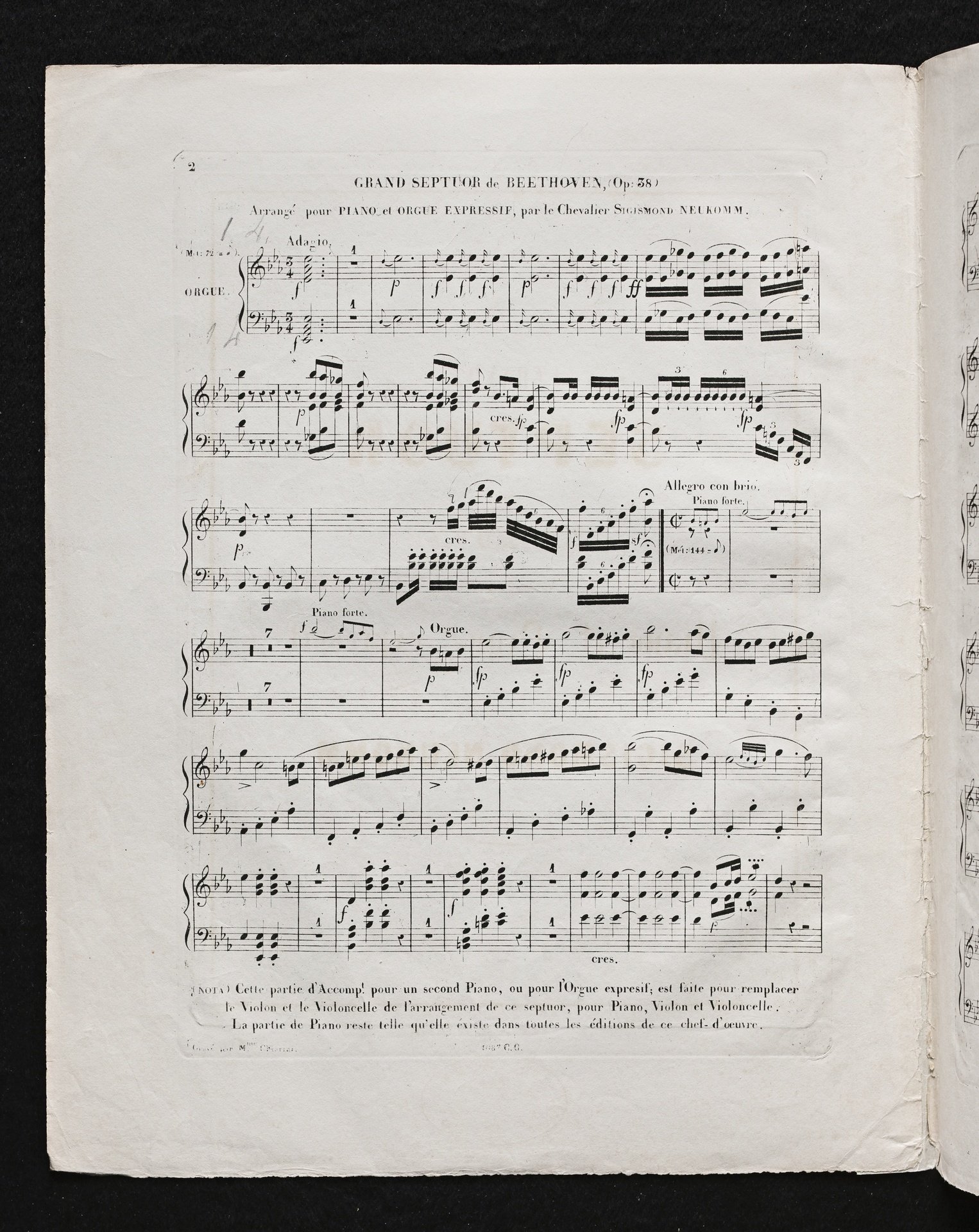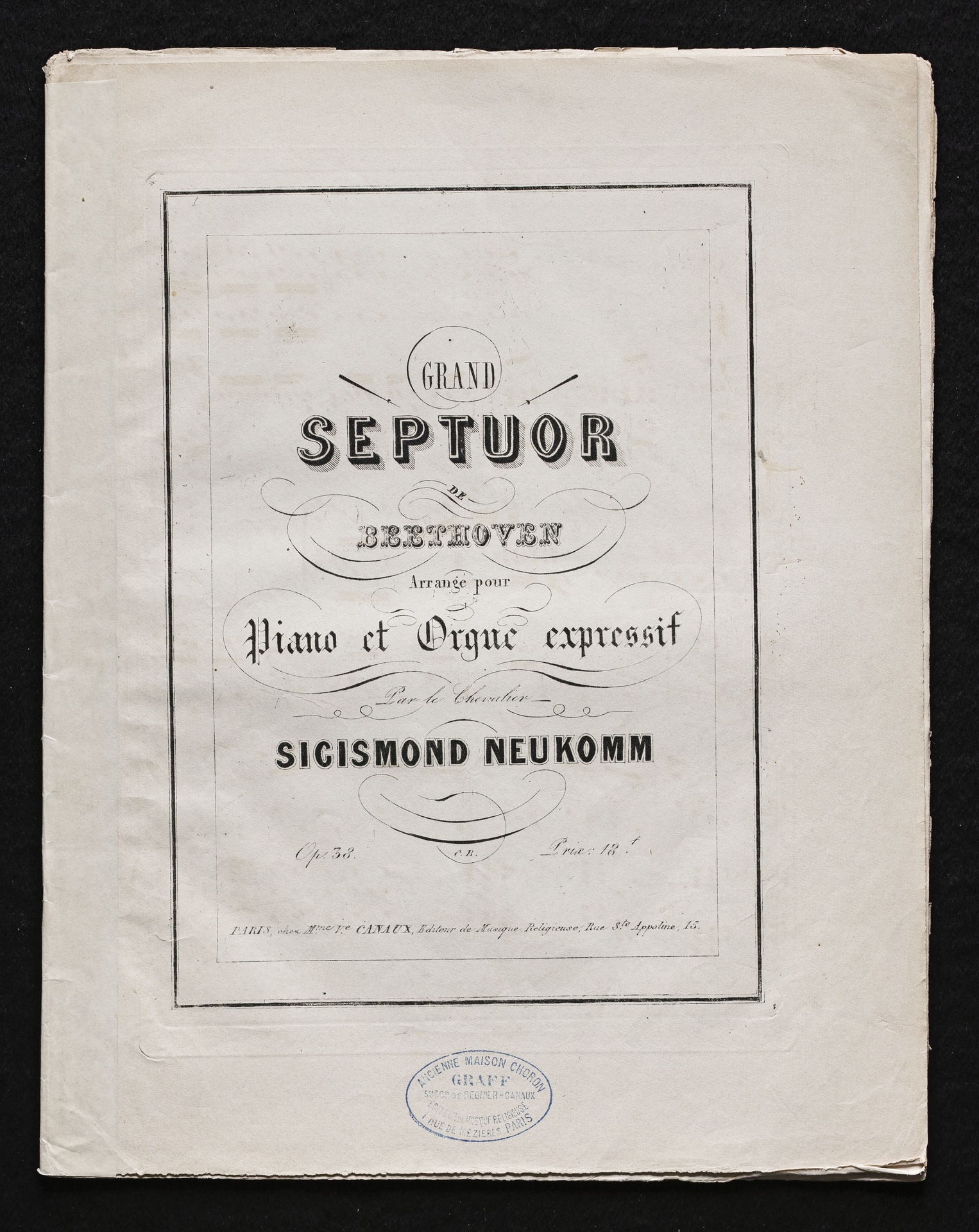 Ludwig van Beethoven, Trio für Klavier, Klarinette oder Violine, Violoncello (Es-Dur) op. 38, Bearbeitung für Orgel und Klavier von Sigismund von Neukomm, Canaux, 1087