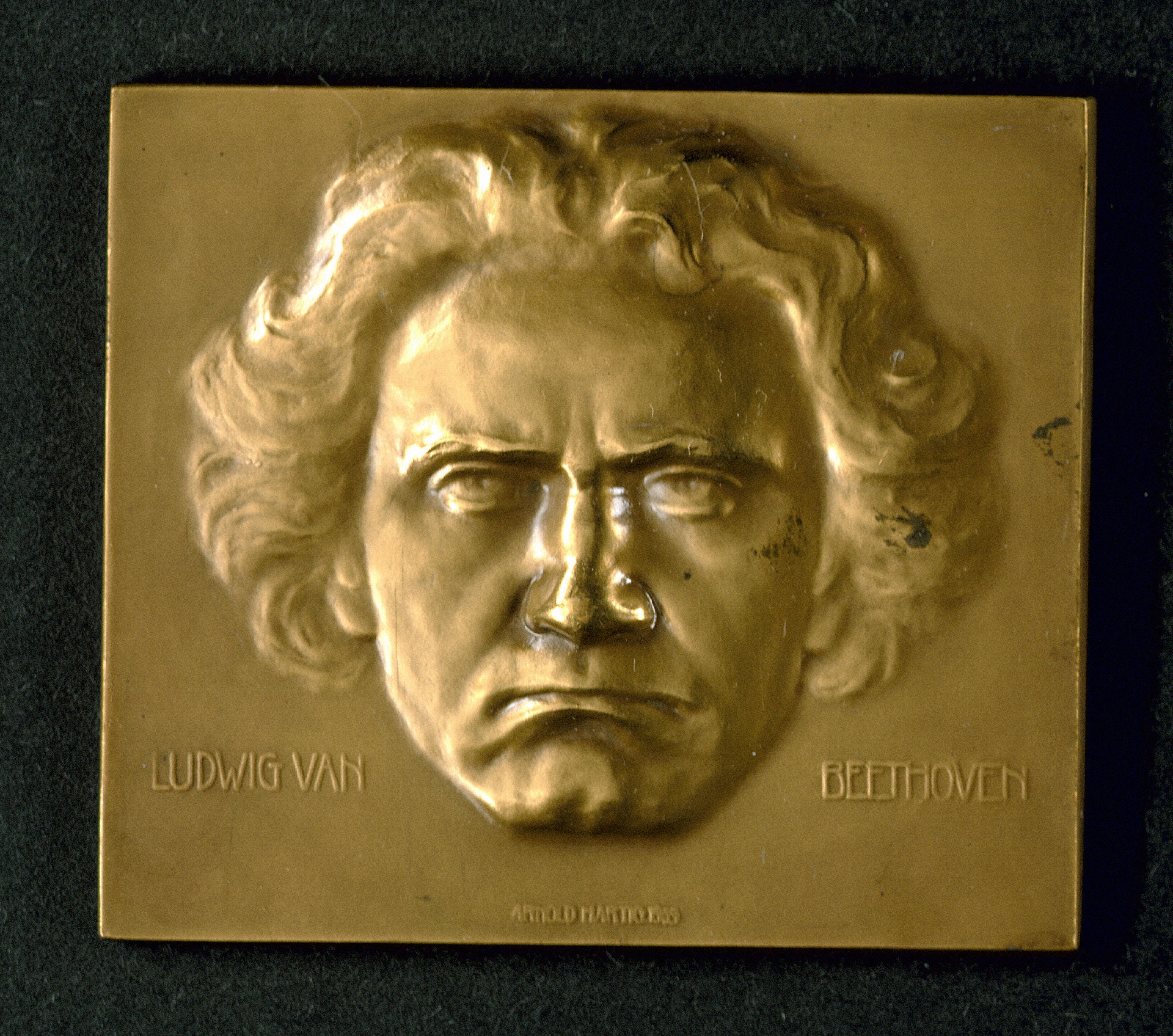 Ludwig van Beethoven, Plakette - Rechteckiges Bronzerelief von Arnold Hartig, Wien, 1909?