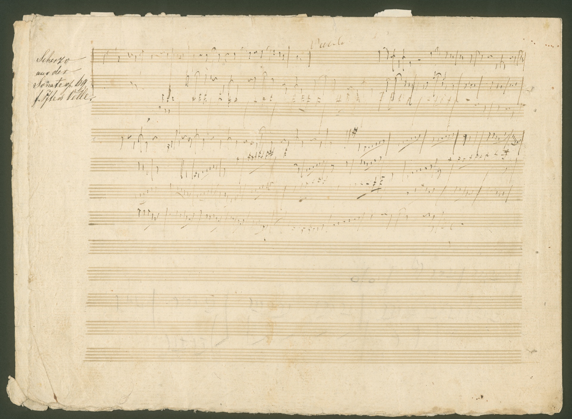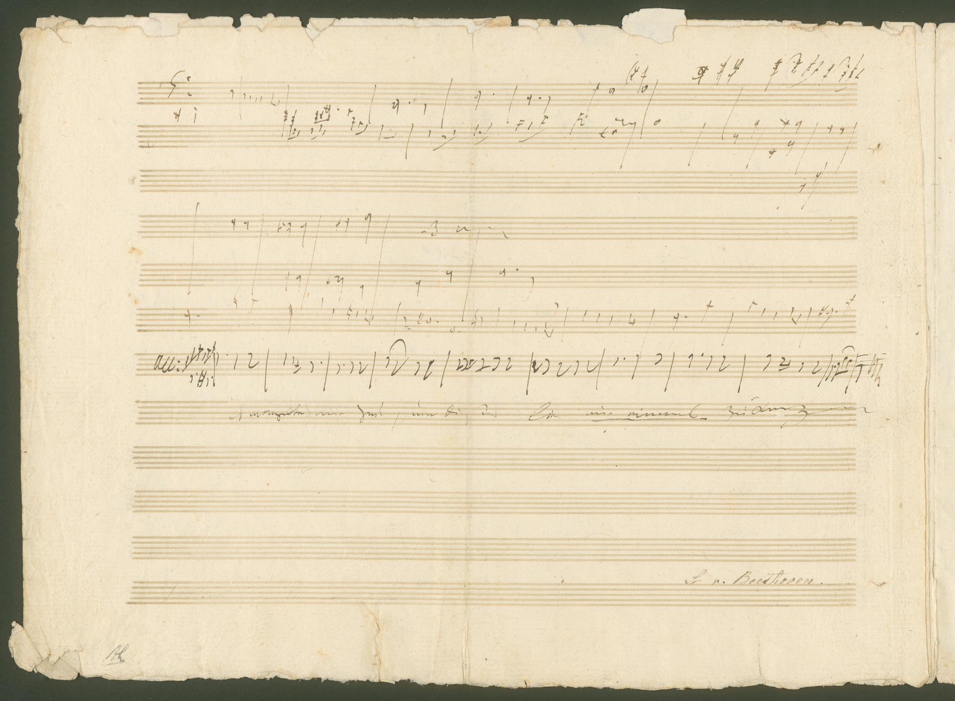 Ludwig van Beethoven, Skizzenblätter zur Violoncellosonate op. 69 sowie Entwürfe zu "Sehnsucht" WoO 134, Autograph