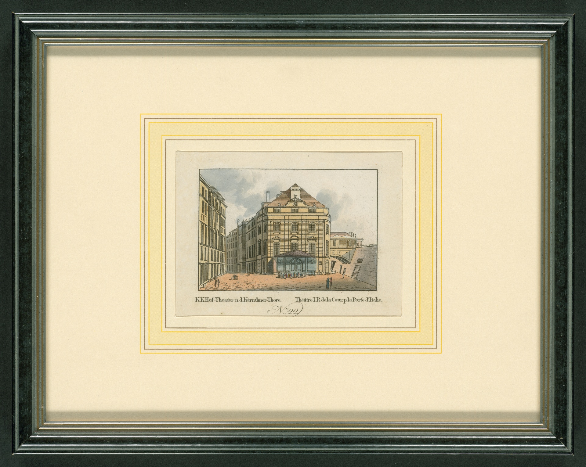 An der Stelle, wo heute in Wien das berühmte Hotel "Sacher" steht, befand sich im 18. und frühen 19. Jahrhundert das Theater "nächst dem Kärtnertor". Das hier abgebildete Haus wurde 1763 eröffnet. Es ersetzte einen älteren Bau, der 1761 während einer Veranstaltung niedergebrannt war. Zusammen mit dem Burgtheater und dem Theater an der Wien war das Kärtnertor-Theater die wichtigste Spielstätte im Wien der Beethoven-Zeit.