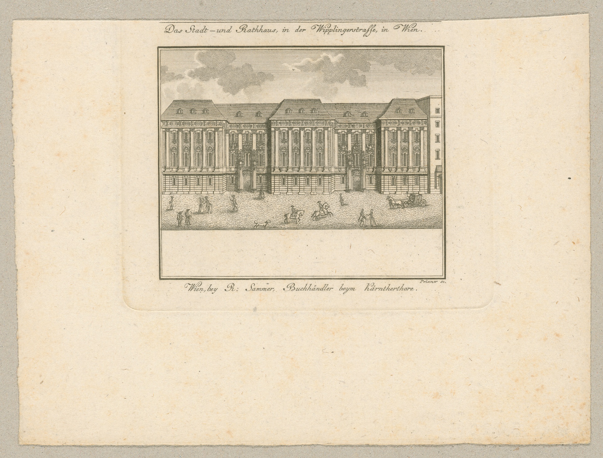 Das Alte Rathaus in der Wipplingerstraße in Wien, 1796 - Stich von Gottfried Prixner, wohl nach einer eigenen Zeichnung