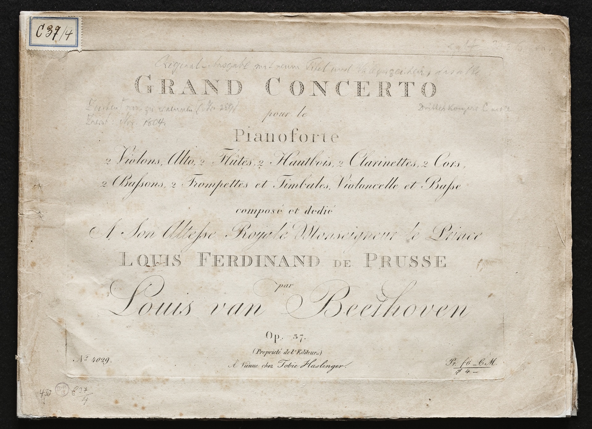 Ludwig van Beethoven, Konzert für Klavier Nr. 3 (c-Moll) op. 37, Stimmen, Haslinger, 4029