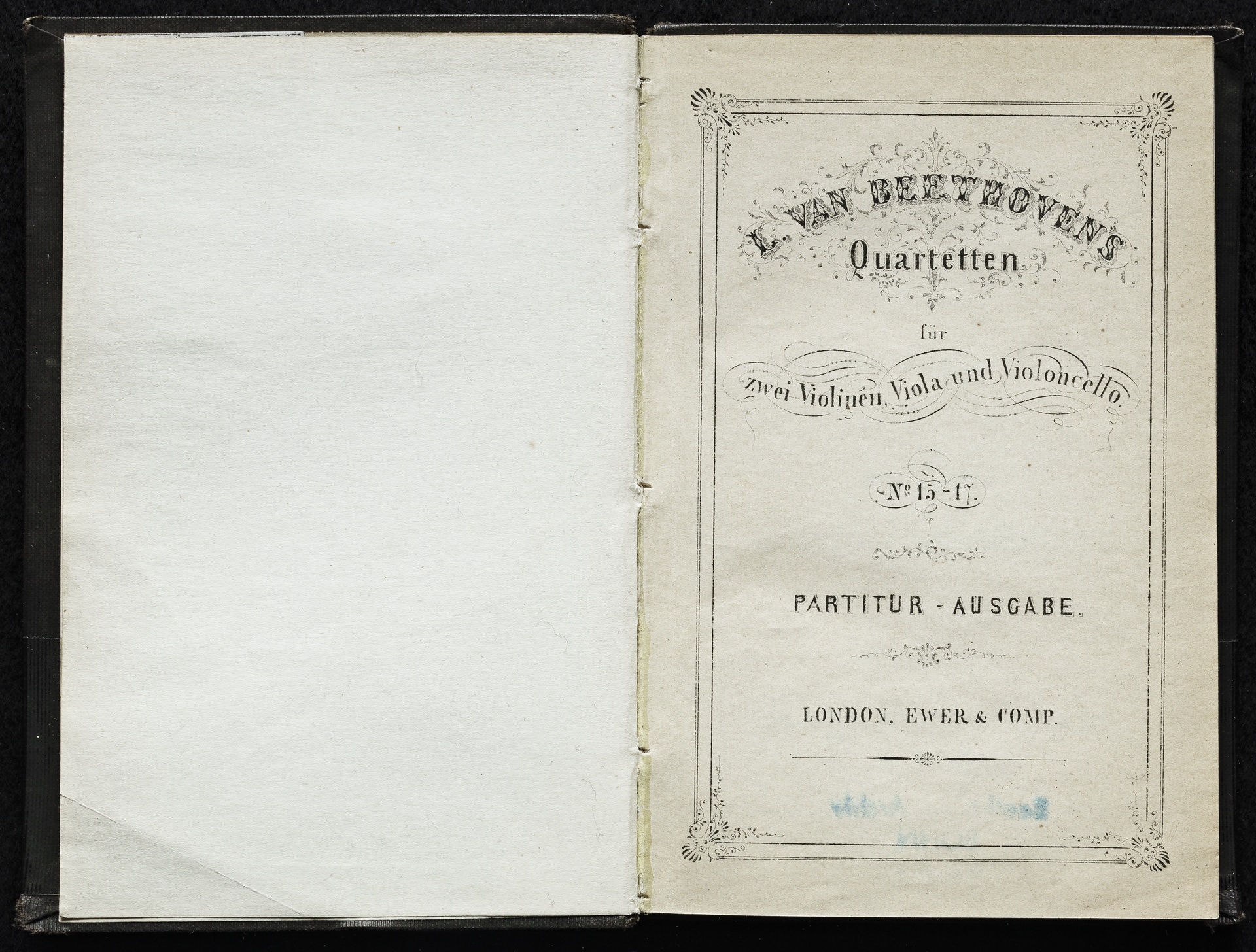 Ludwig van Beethoven, Quartette für 2 Violinen, Viola, Violoncello (a-Moll) und (F-Dur) und Fuge für 2 Violinen, Viola, Violoncello (B-Dur) op. 132, op. 135 und op. 133, Partitur, Ewer