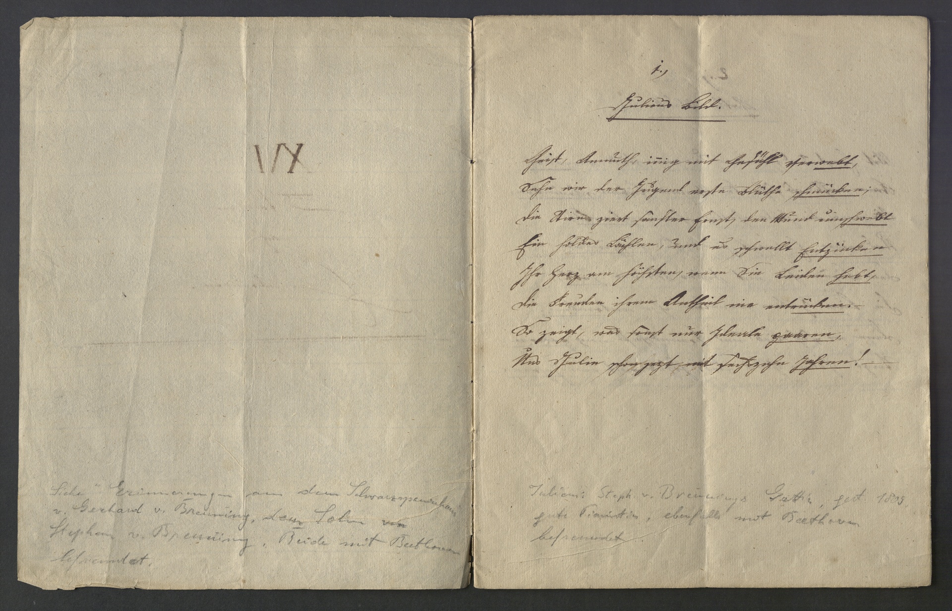 Stephan von Breuning, Gedichtmanuskript, Autograph
