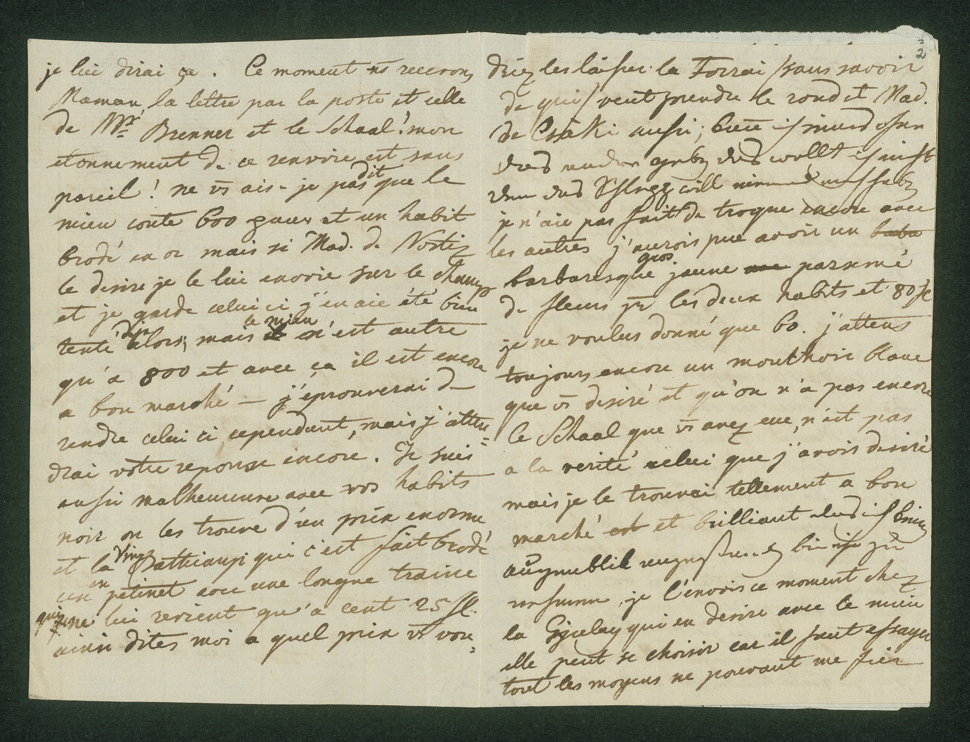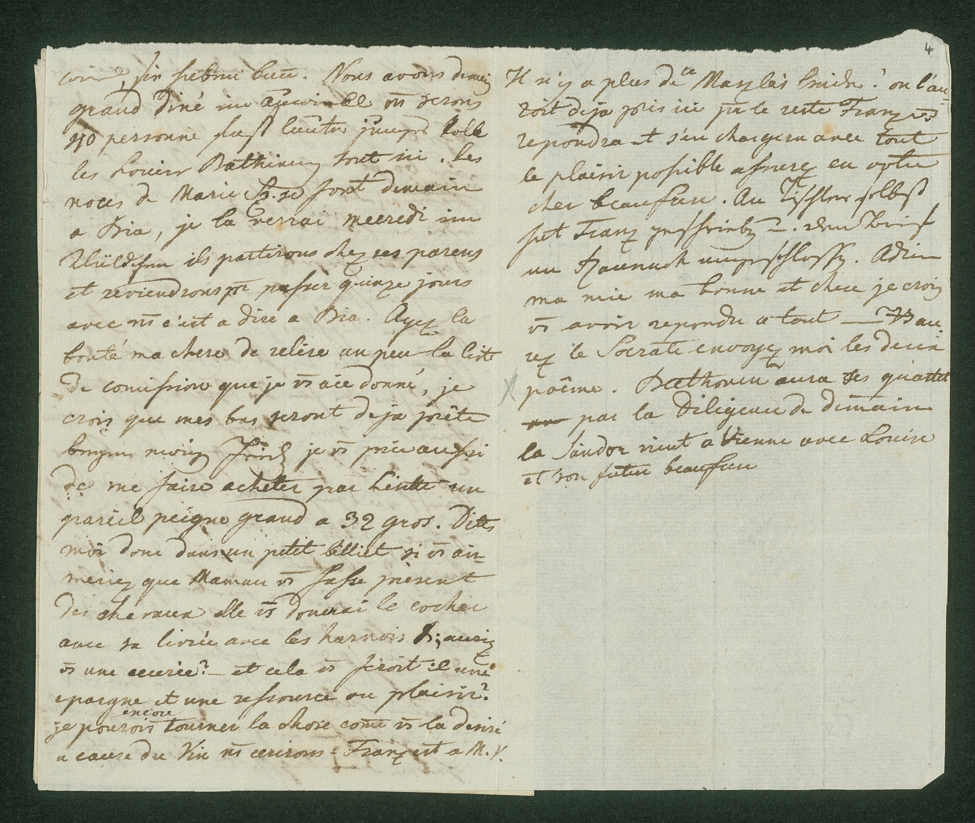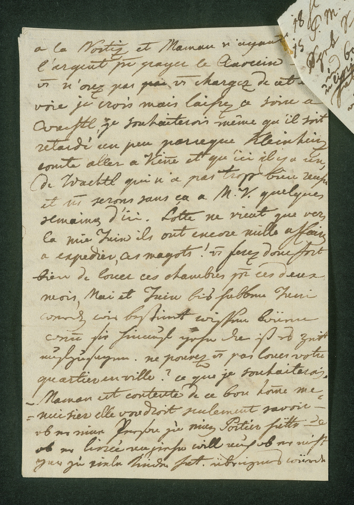 Am Ende ein Satz, Beethoven betreffend: "Beethoven aura ces [verbessert aus: ses] quartet par la diligence de demain".