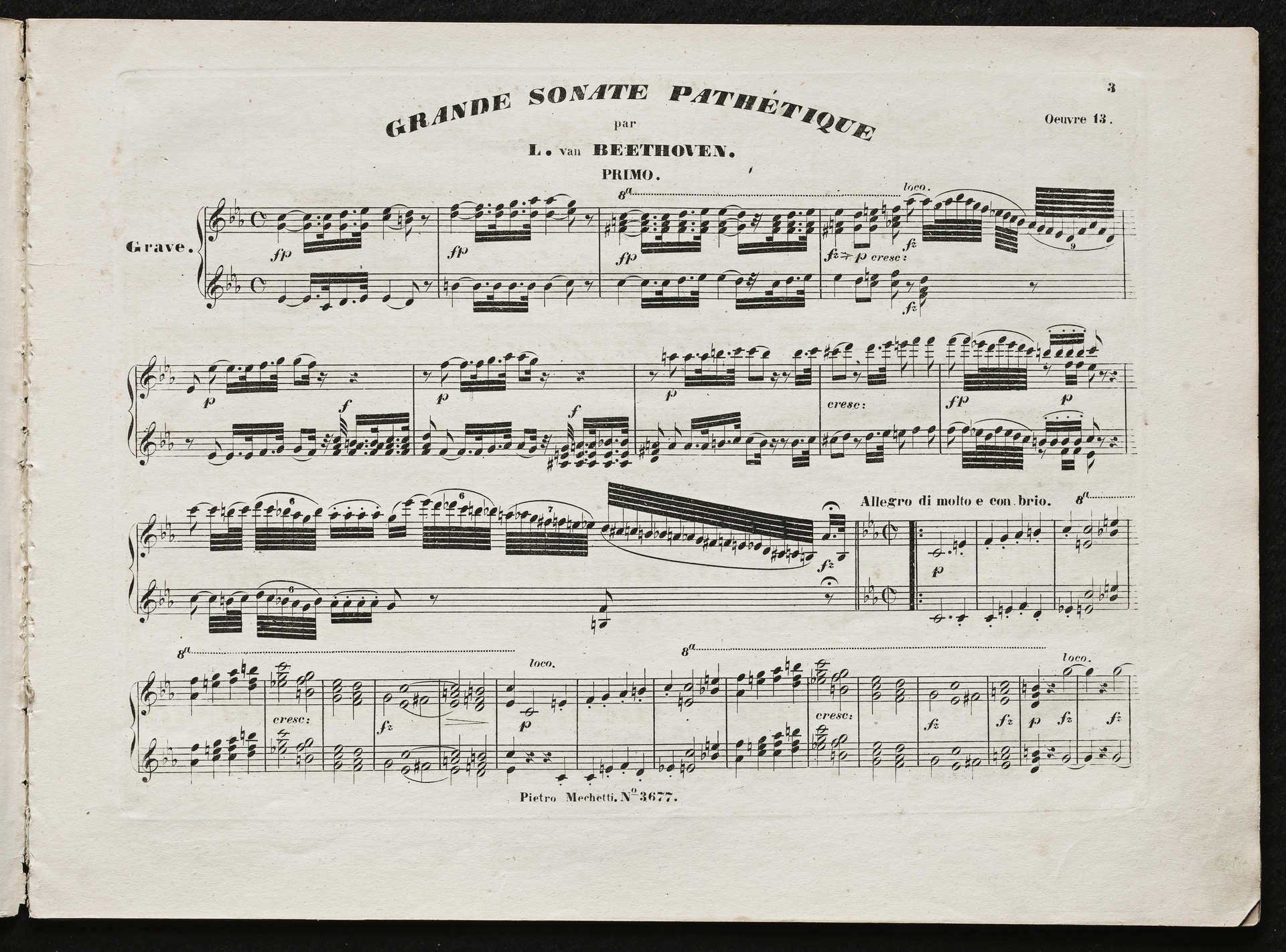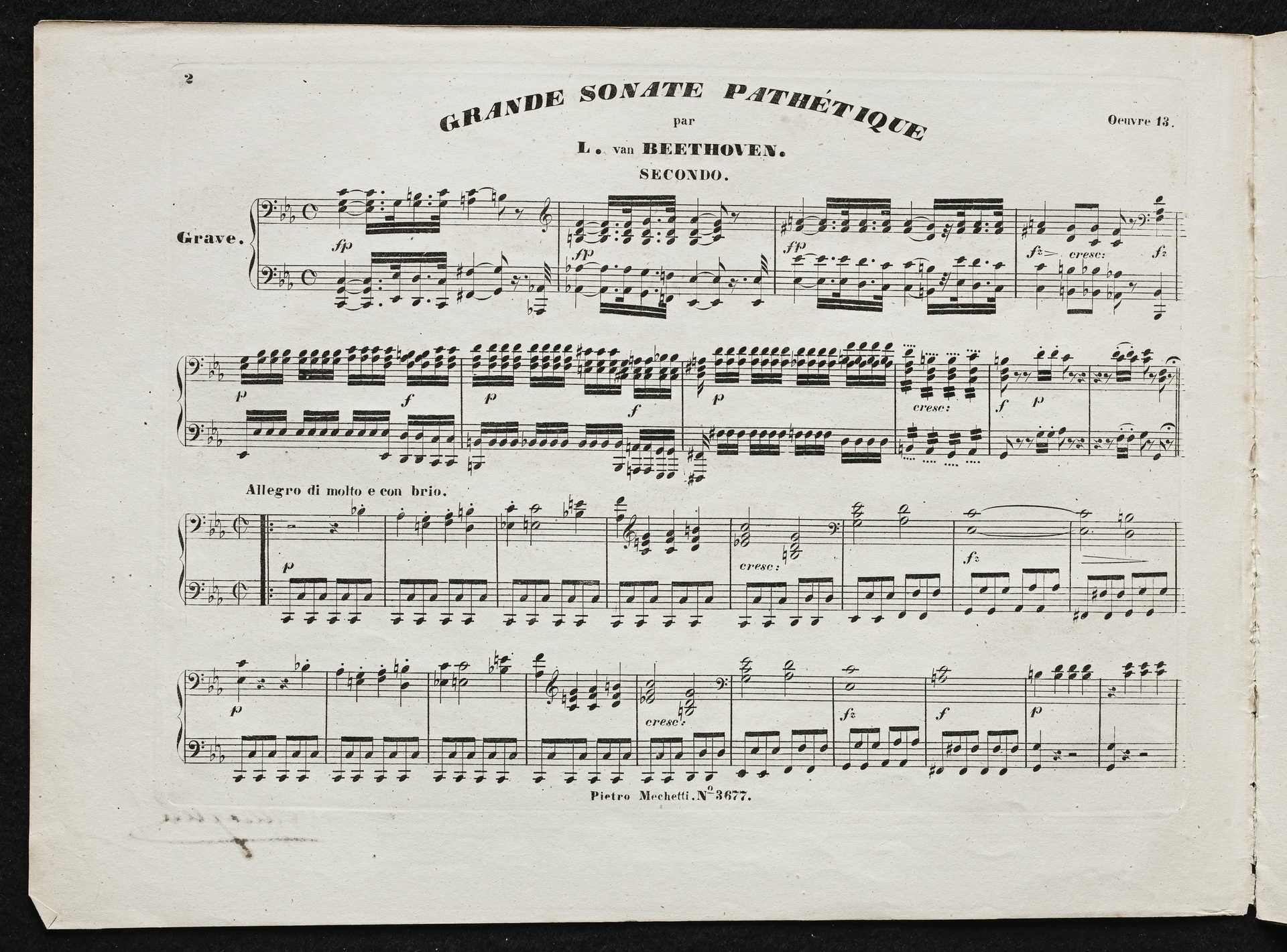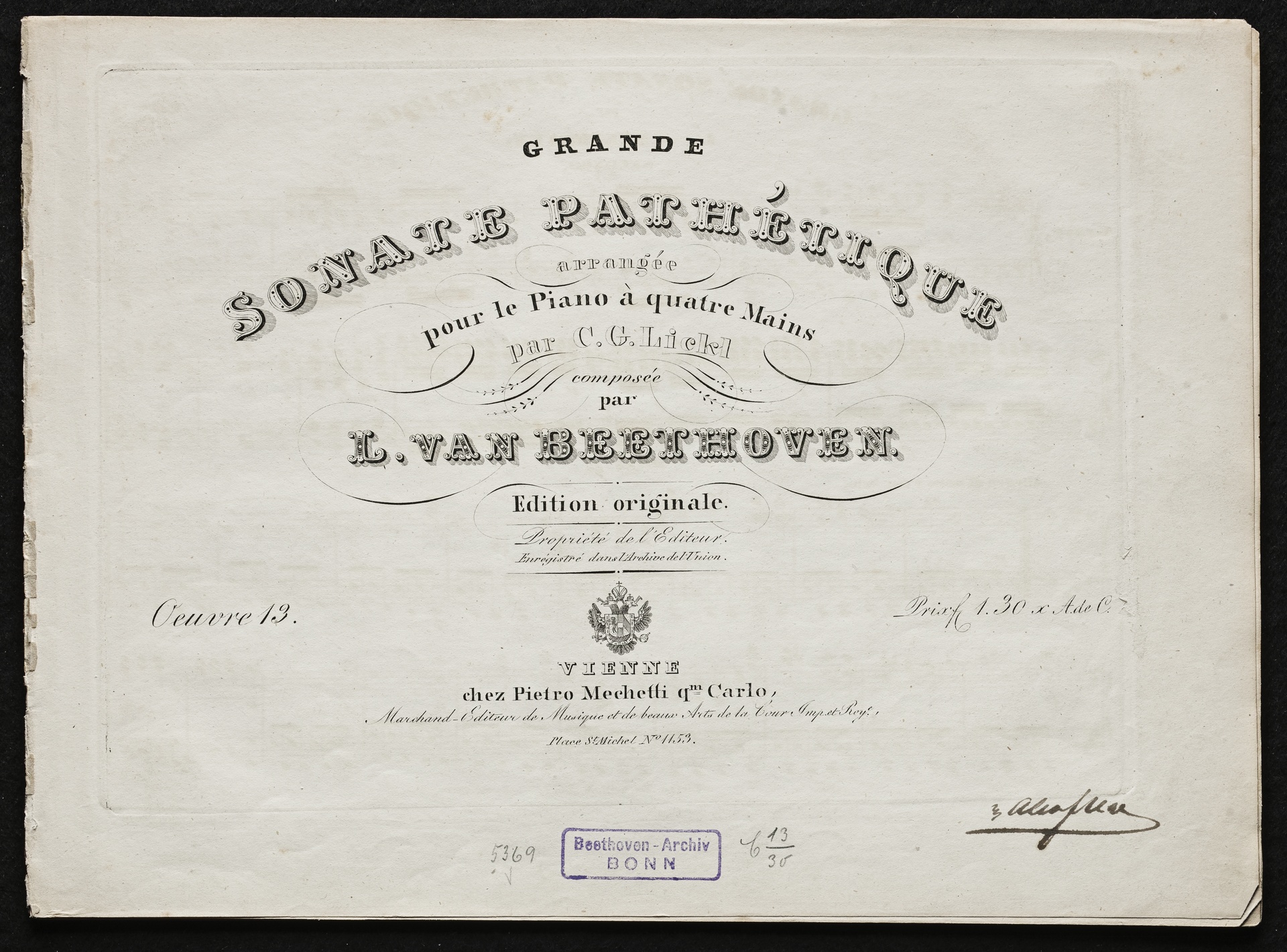 Ludwig van Beethoven, Sonate für Klavier (c-Moll) op. 13 (Sonate pathétique), Bearbeitung für Klavier zu 4 Händen von Carl Georg Lickl, Mechetti, 3677