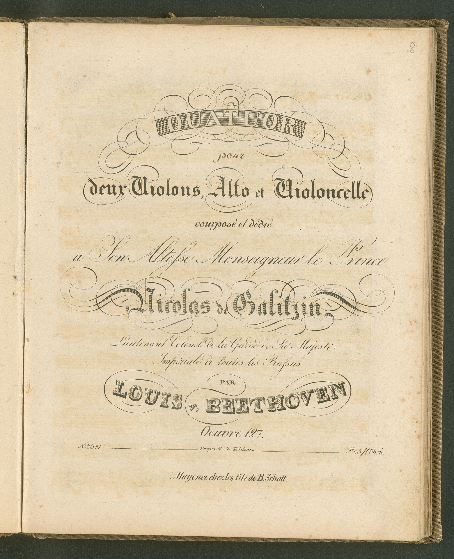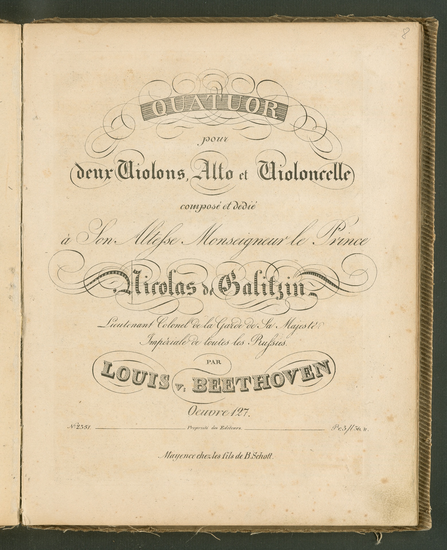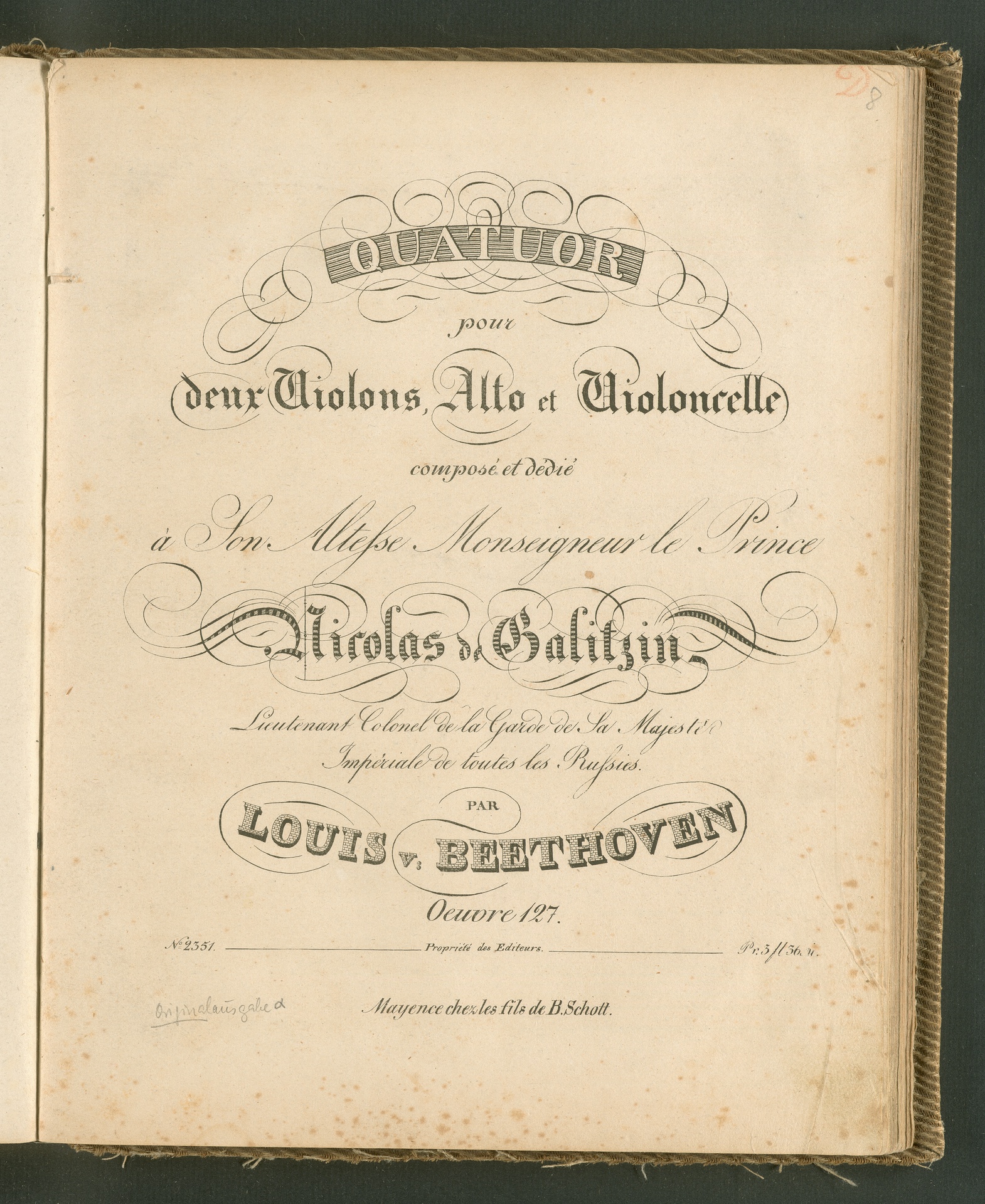 Ludwig van Beethoven, Quartett für 2 Violinen, Viola, Violoncello (Es-Dur) op. 127, Stimmen, Schott, 2351