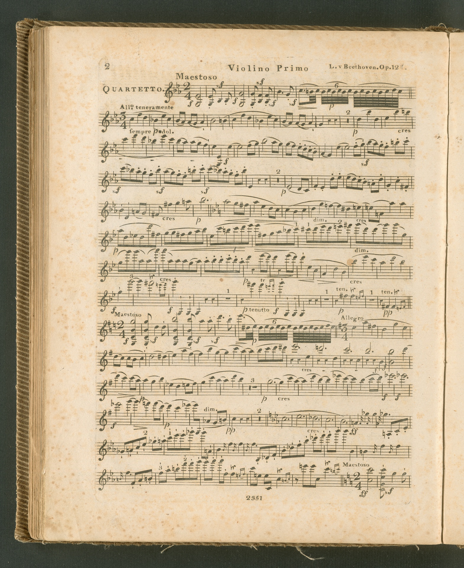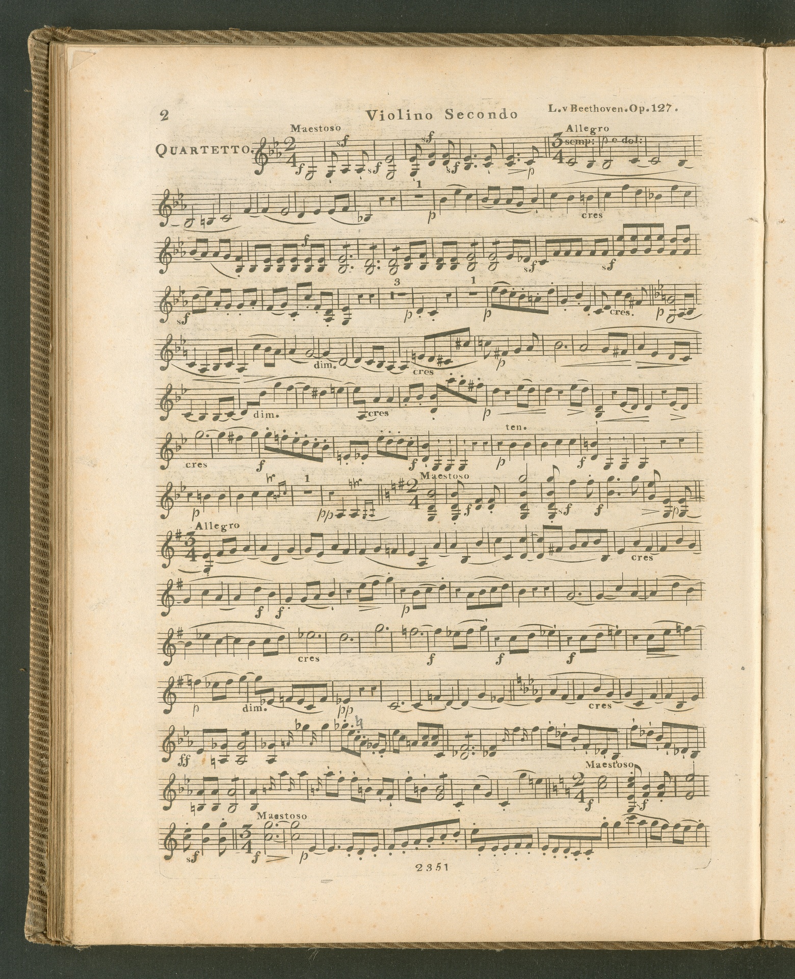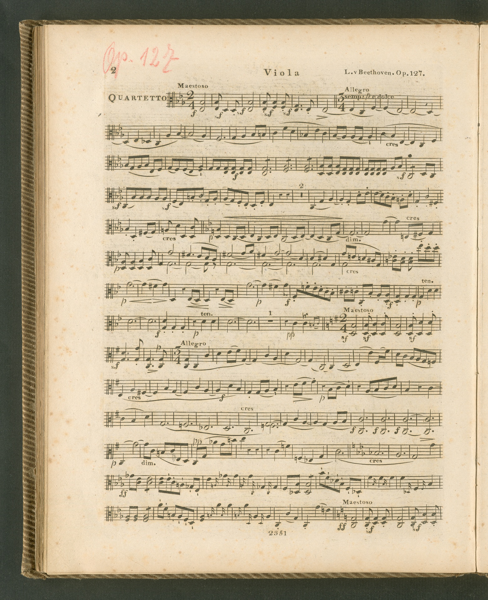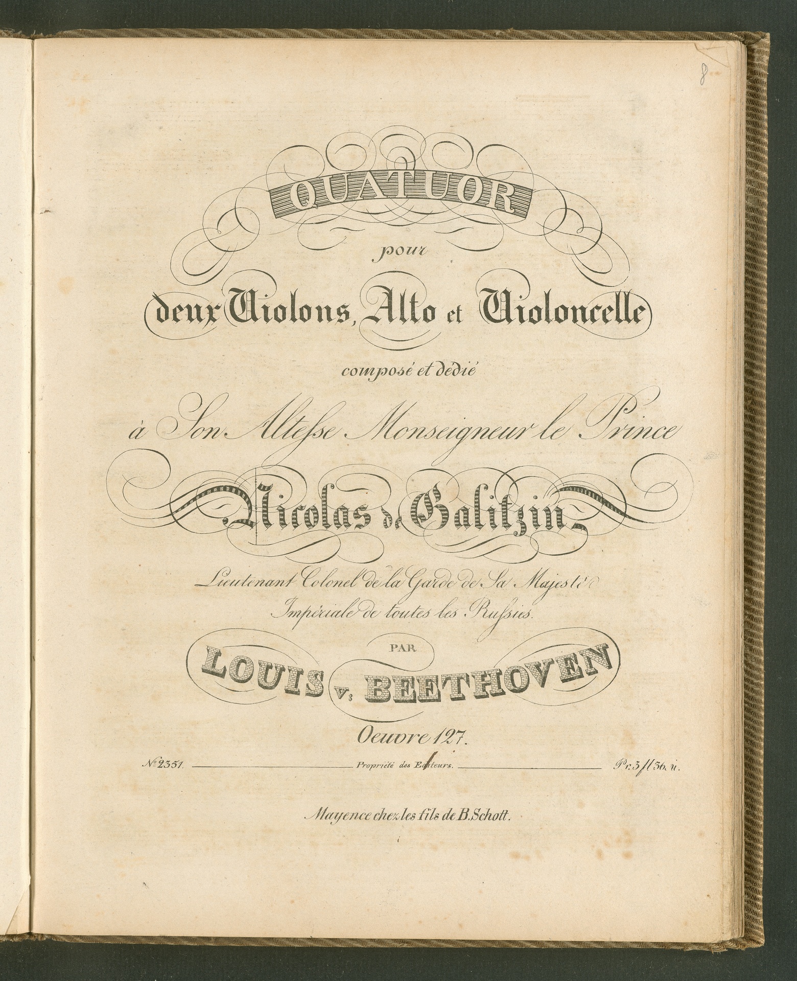 Ludwig van Beethoven, Quartett für 2 Violinen, Viola, Violoncello (Es-Dur) op. 127, Stimmen, Schott, 2351