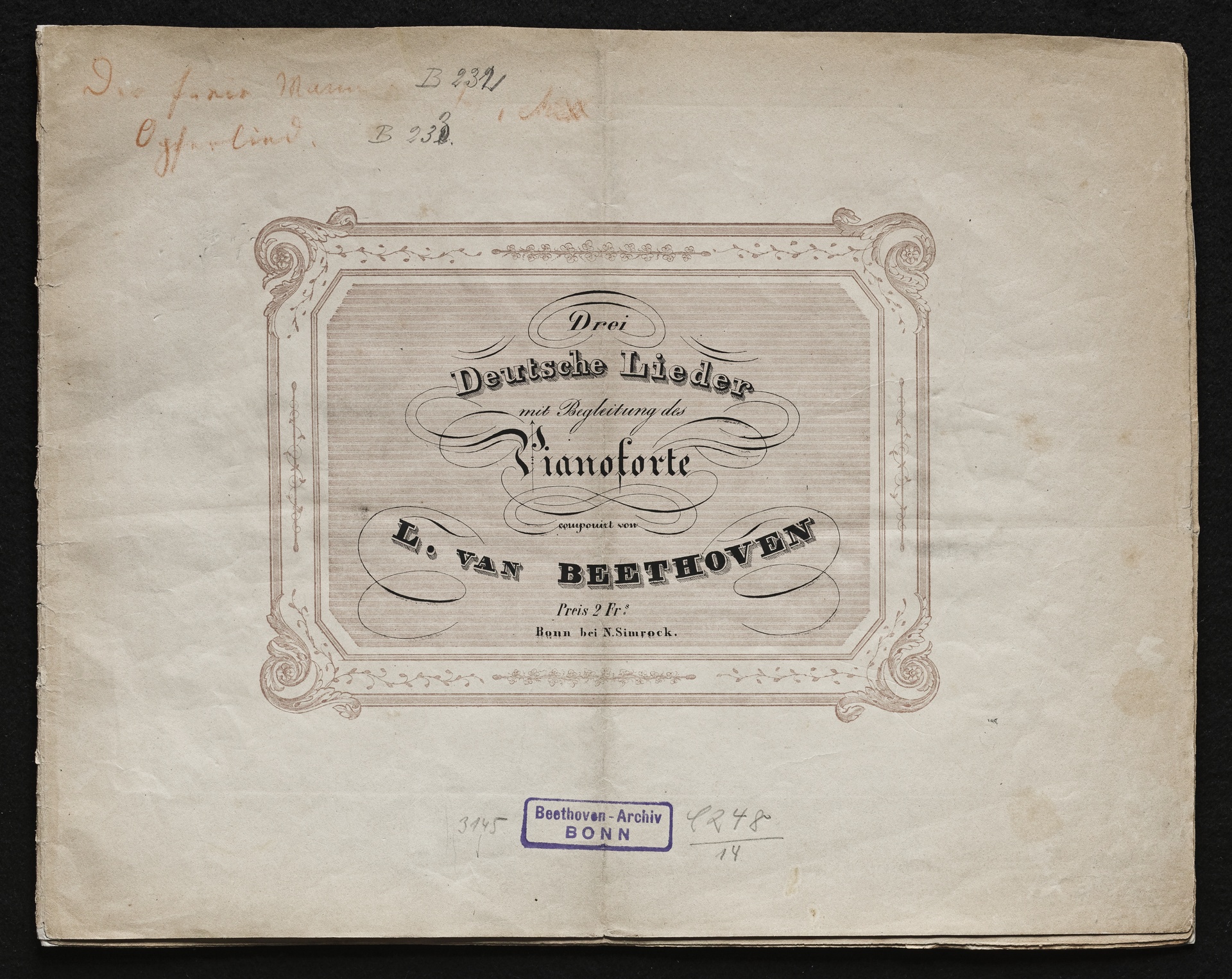 Ludwig van Beethoven, Lieder für Singstimme und Klavier WoO 117, WoO 126, WoO 127, Simrock, 578