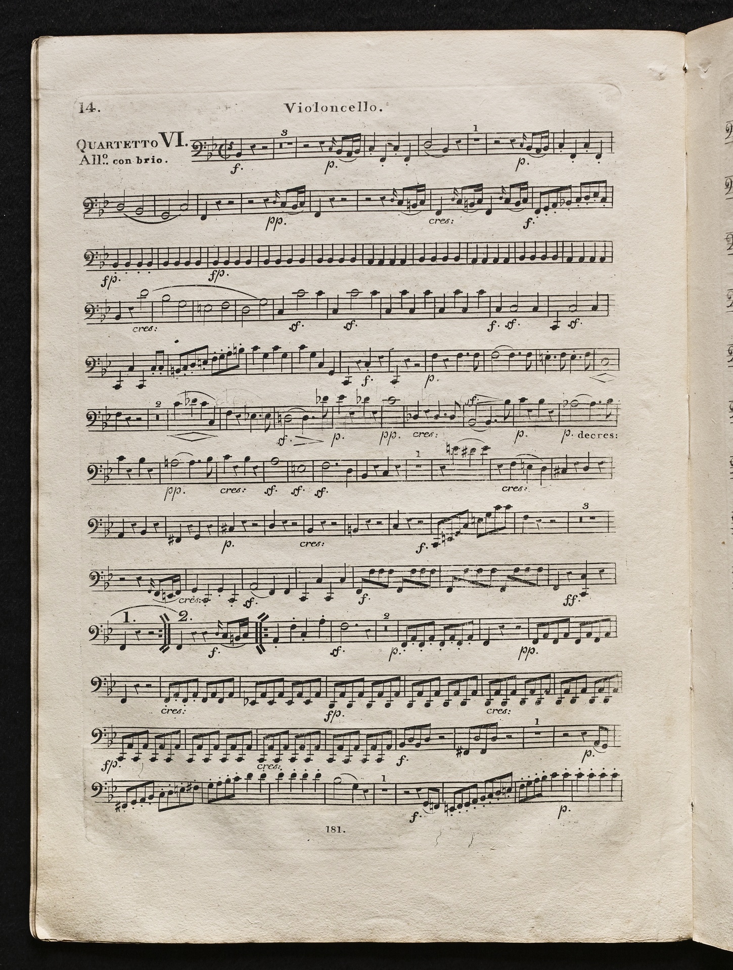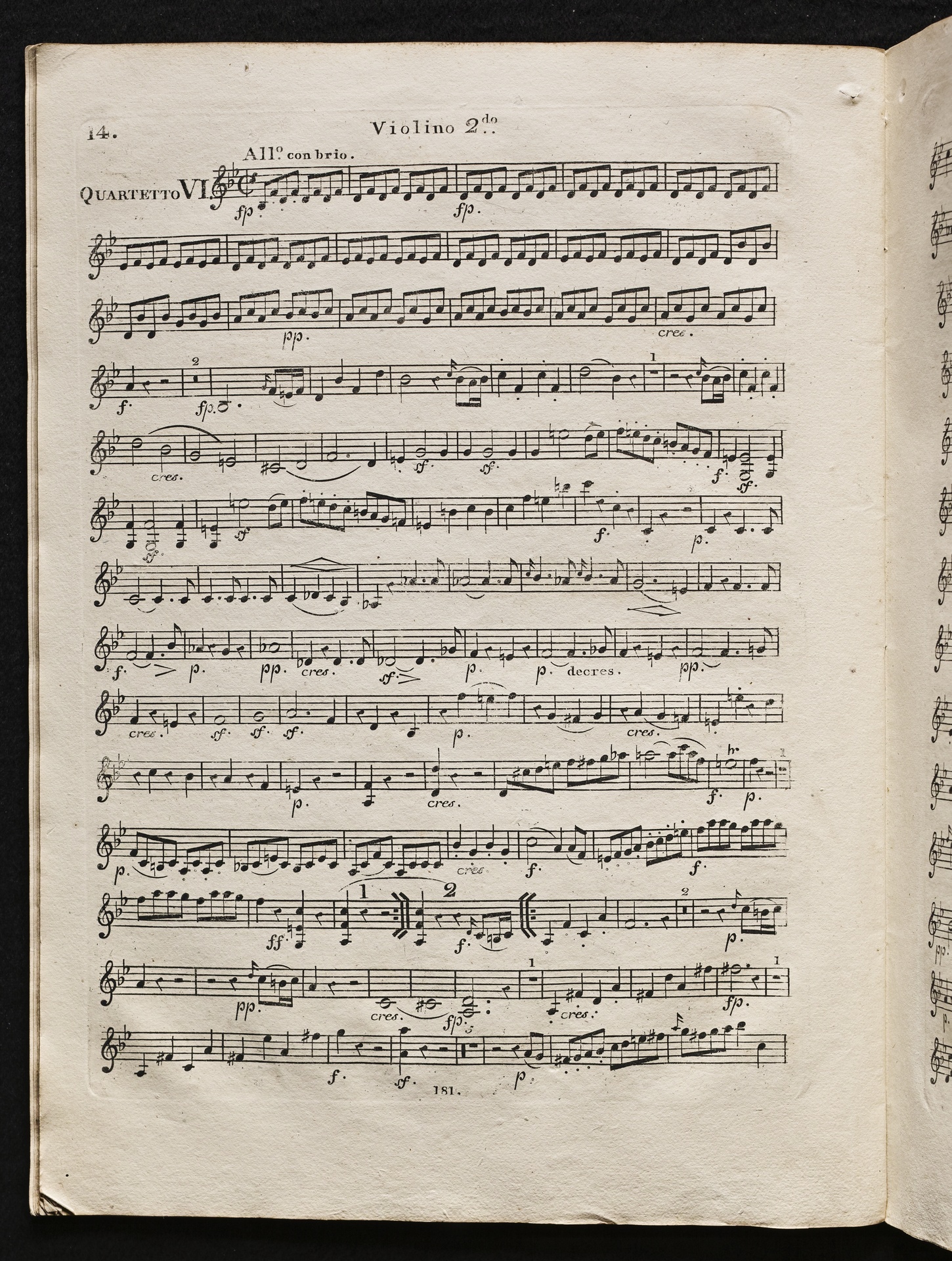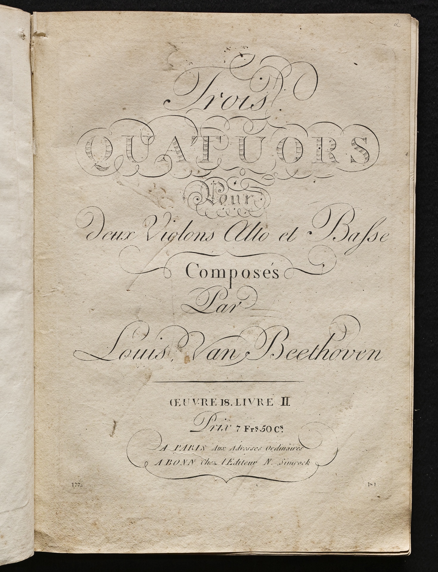 Ludwig van Beethoven, Quartette für 2 Violinen, Viola, Violoncello (c-Moll, A-Dur, B-Dur) op. 18, 4-6, Stimmen, Simrock, 181