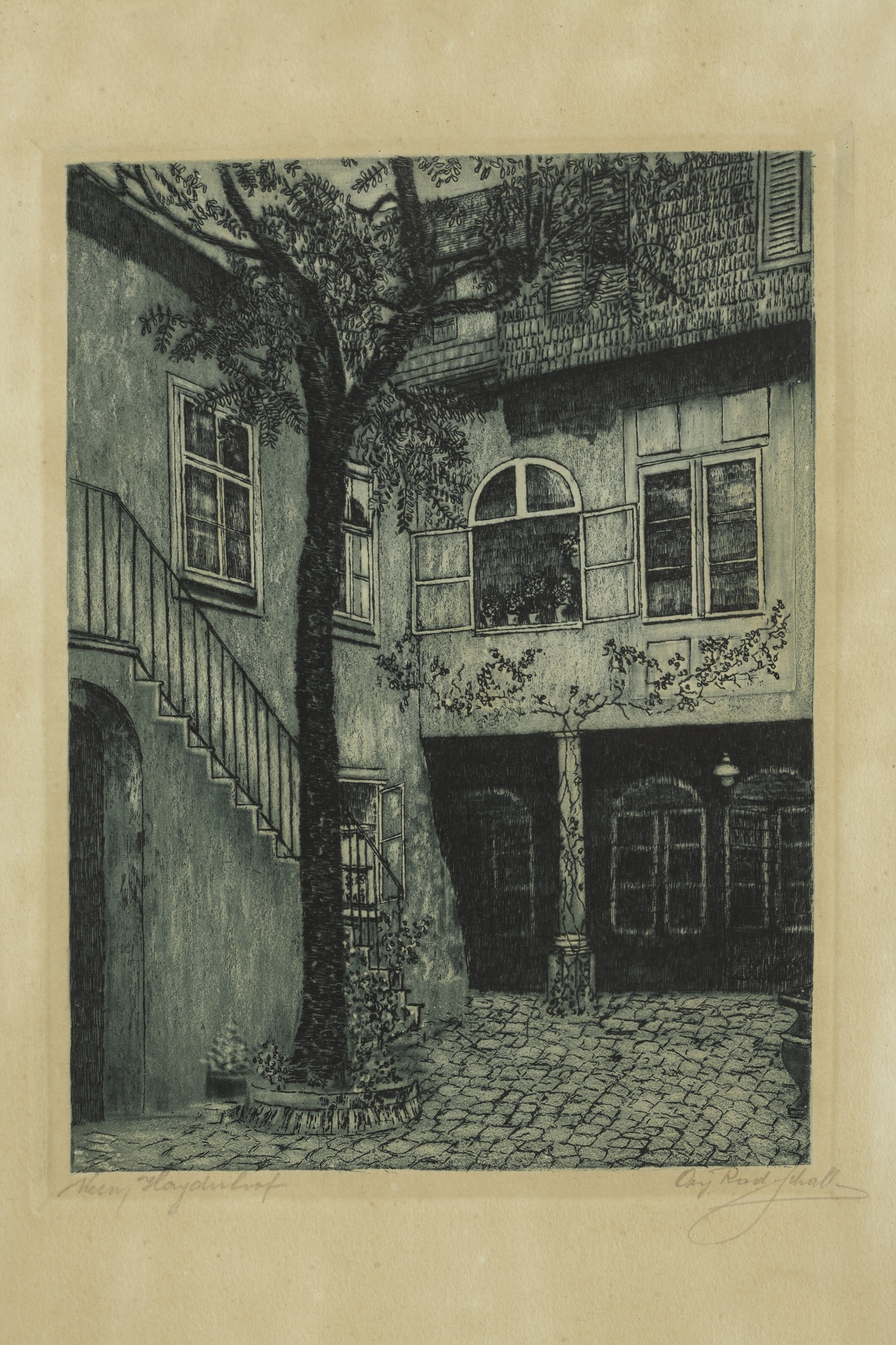 Der sogenannte "Haydn-Hof" in Wien - Radierung von Schall nach einer eigenen Zeichnung, Wien, um 1928