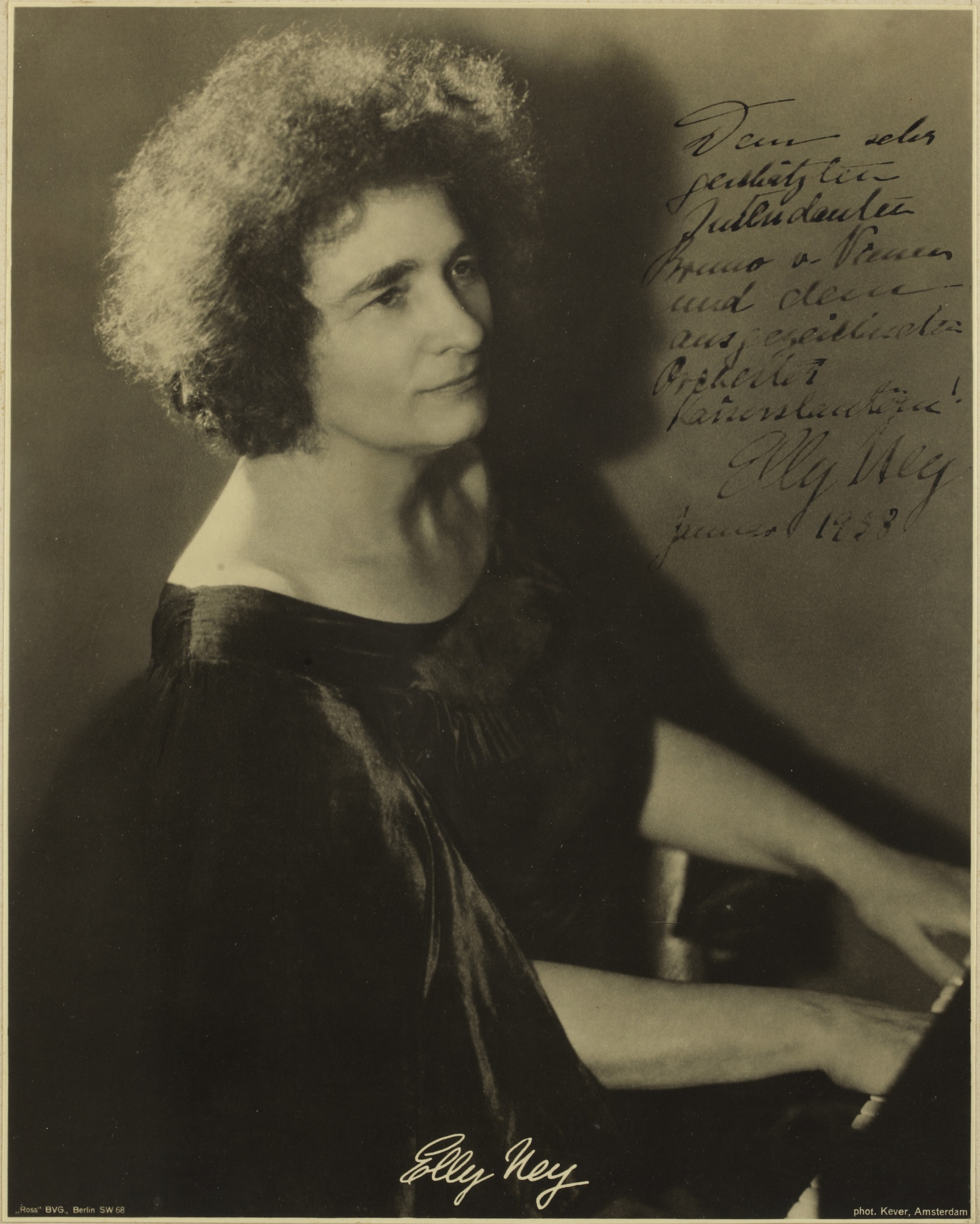 Elly Ney (1882-1968) - Fotografie aus dem Atelier Kever mit handschriftlicher Widmung der Pianistin, erschienen bei Ross, Berlin, um 1938