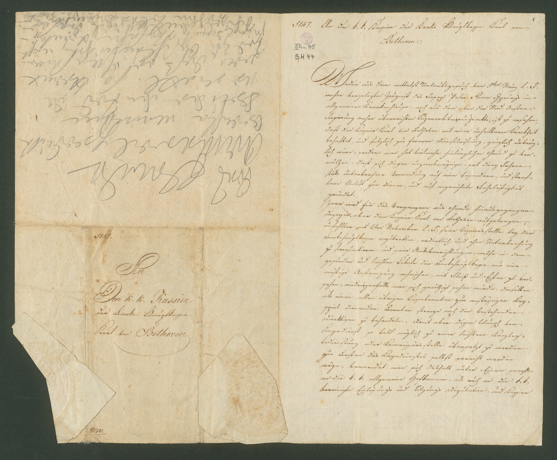 Kaspar Karl van Beethoven wird aufgefordert, ab sofort wieder zur Arbeit zu erscheinen, da weder aus dem ärztlichen Attest noch aus einem Regierungsgutachten hervorgehe, dass er unheilbar krank sei. Ihm wird Faulheit unterstellt und mit entsprechenden Disziplinarmaßnahmen gedroht. Kaspar Karl starb am 15.11.1815. (J.R.)