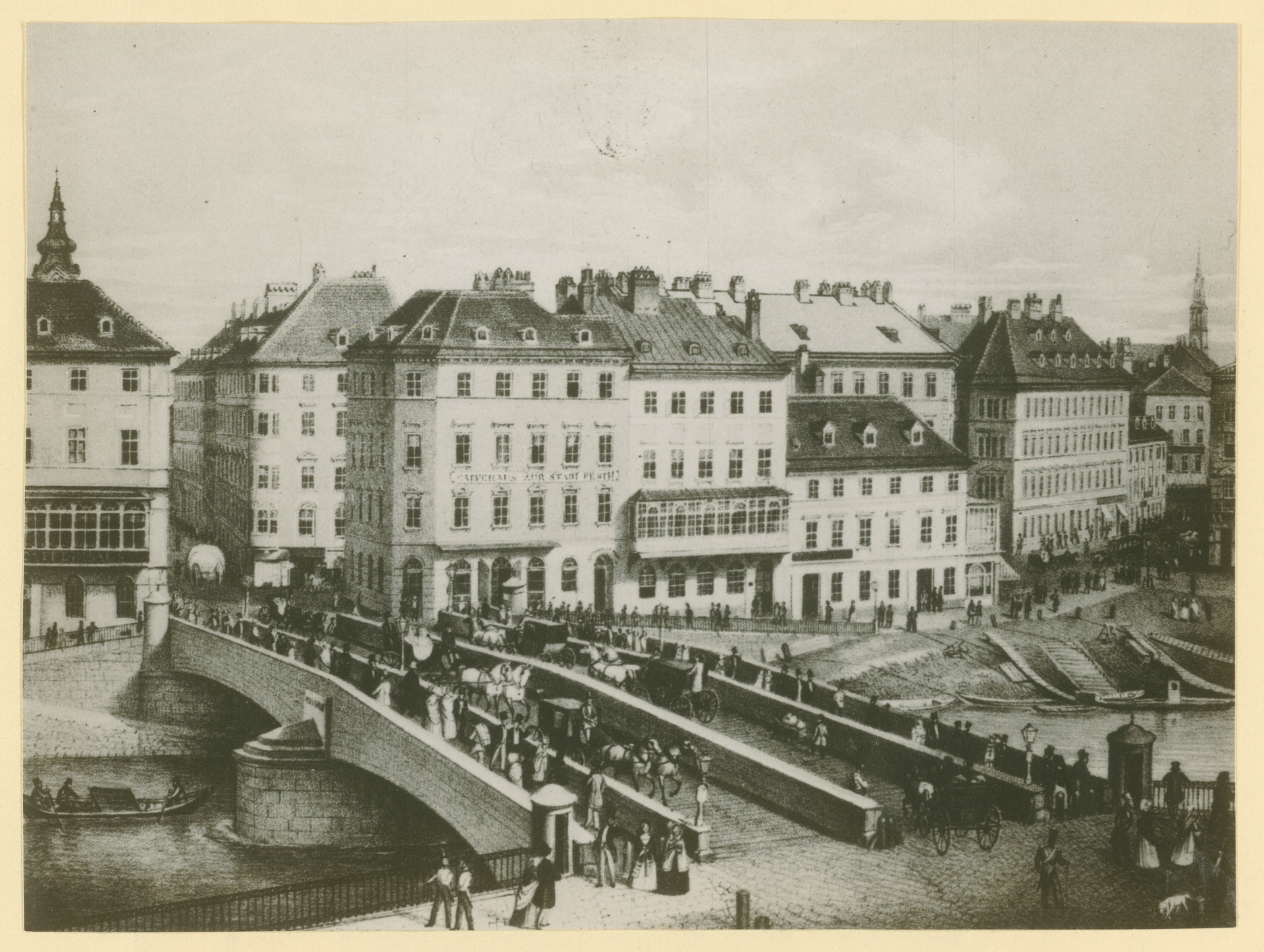 Die Ferdinandsbrücke in Wien, um 1820 - Fotografie einer vermutlich von Wilhelm Mayer stammenden Lithographie