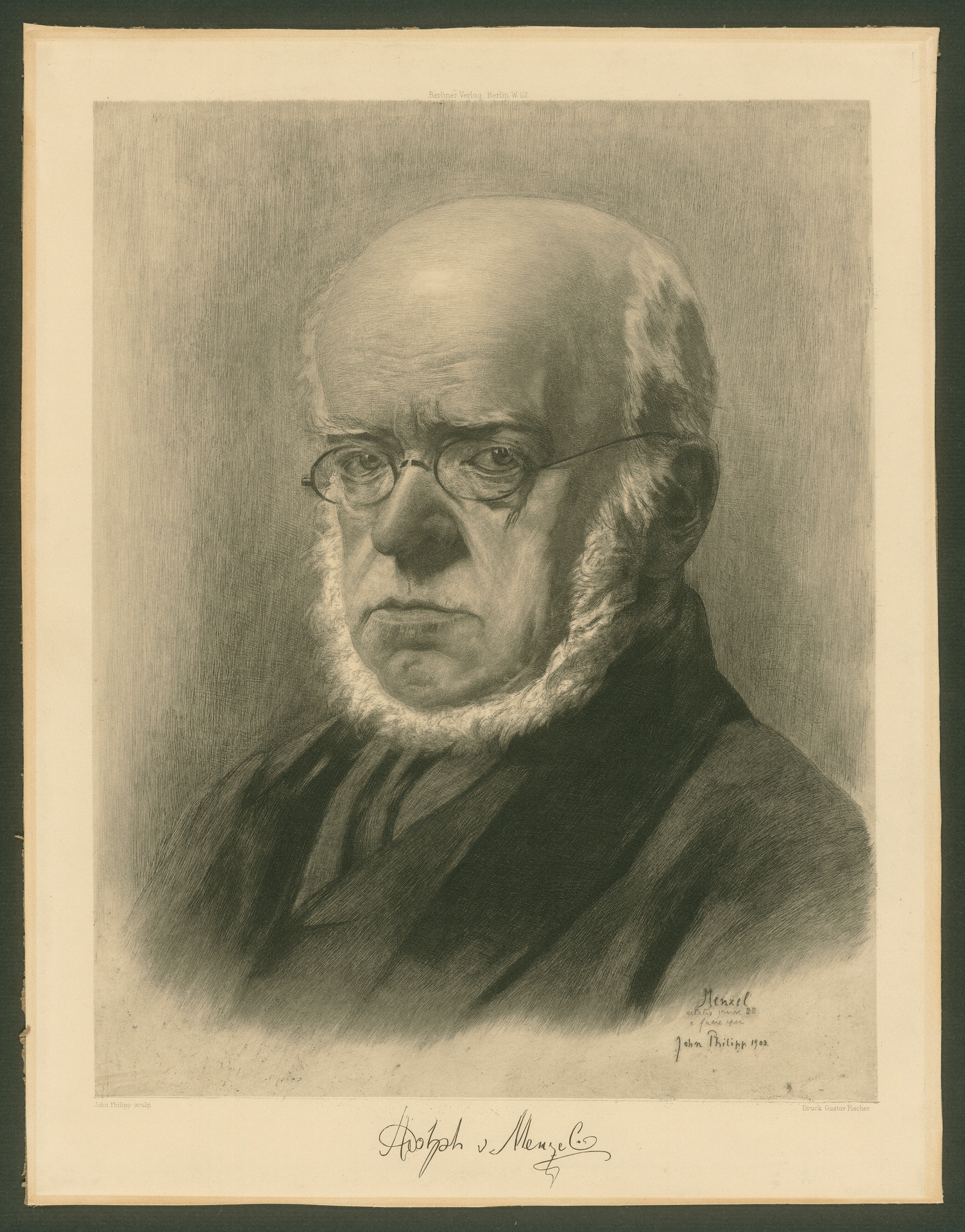 Adolf Friedrich Erdmann von Menzel - Radierung von John Philipp nach einer eigenen Zeichnung, Berlin, 1903?