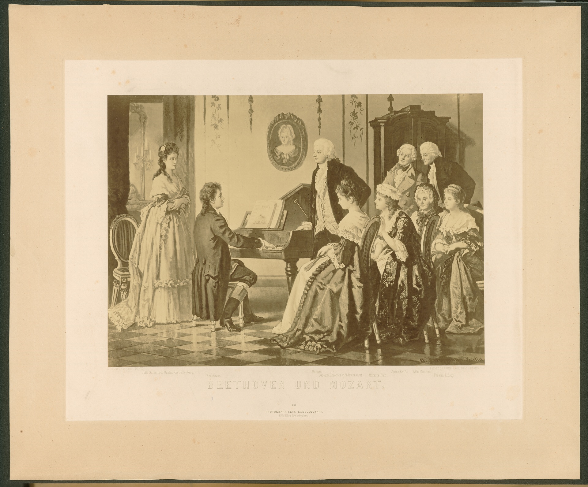 "Beethoven und Mozart" - Gemälde von August Borckmann, wohl aus der Zeit um 1870, Fotografie der Photographischen Gesellschaft, Berlin, 1880-1890