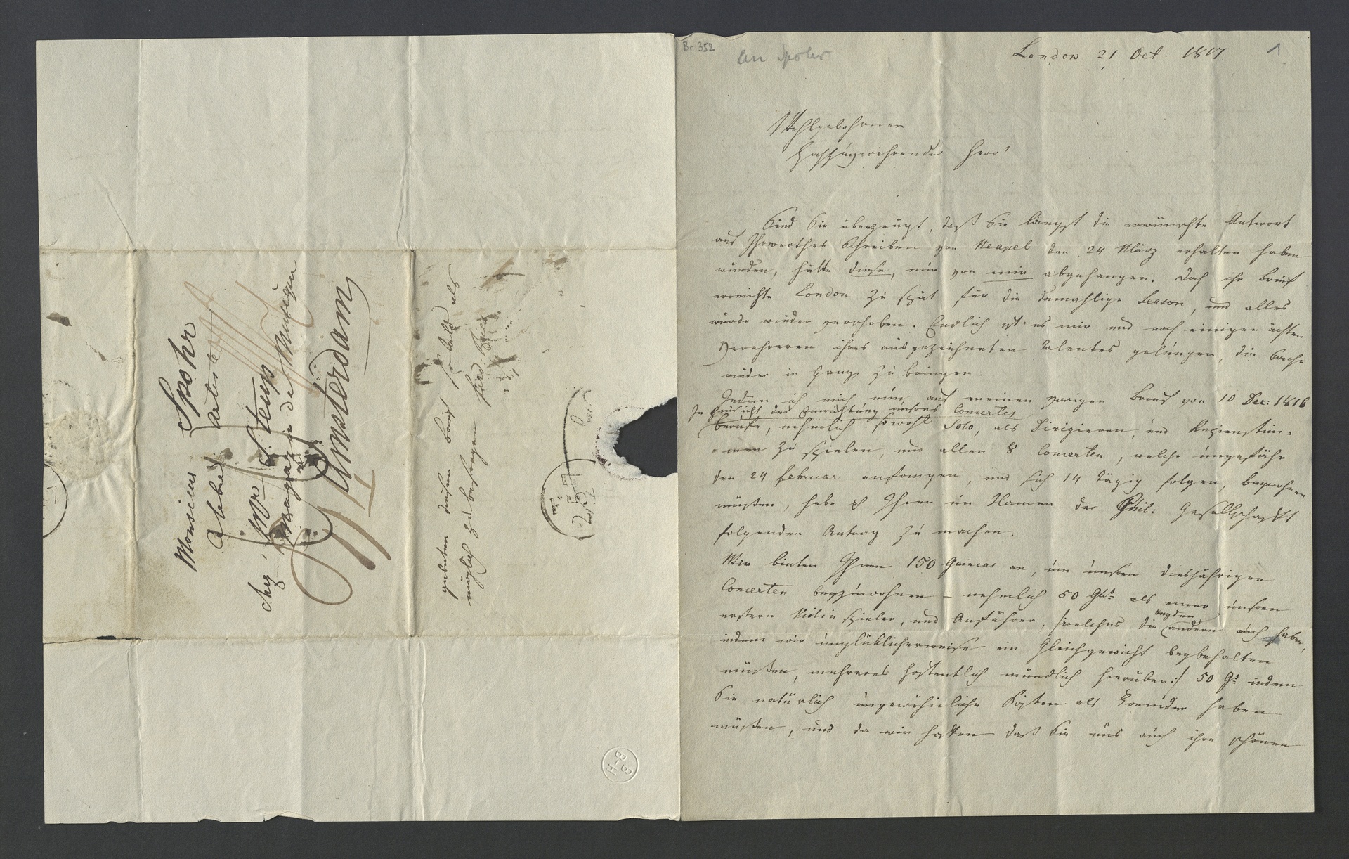 Ferdinand Ries, Brief an Louis Spohr in Amsterdam, London, 21. Oktober 1817, Autograph