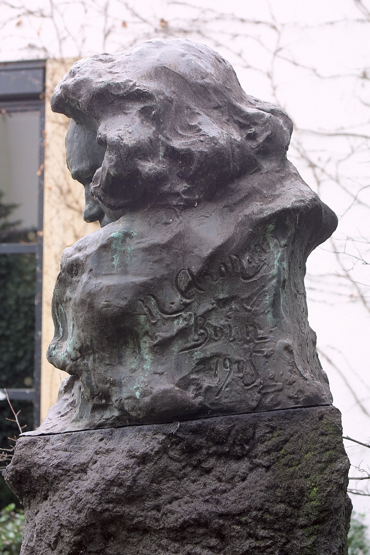 Wenig später entstand in Paris ein monumentales Gipsmodell für eine Büste. Dieses Modell machte der Künstler dem Verein Beethoven-Haus zum Geschenk, wo es so großen Anklang fand, daß Aronson im August 1905 mit der Ausführung einer Bronzefassung beauftragt wurde. Im Herbst des Jahres 1905 wurde der Sockel für die Plastik, ebenfalls nach Aronsons Entwurf, in Granit ausgeführt. Am 135. Geburtstag Ludwig van Beethovens, dem 17. Dezember 1905, wurde das Denkmal schließlich in einer feierlichen Zeremonie im Garten des Beethoven-Hauses enthüllt. Hier ist es auch heute noch zu sehen und wird von den Besuchern des Museums noch immer sehr bewundert. (S.B.)