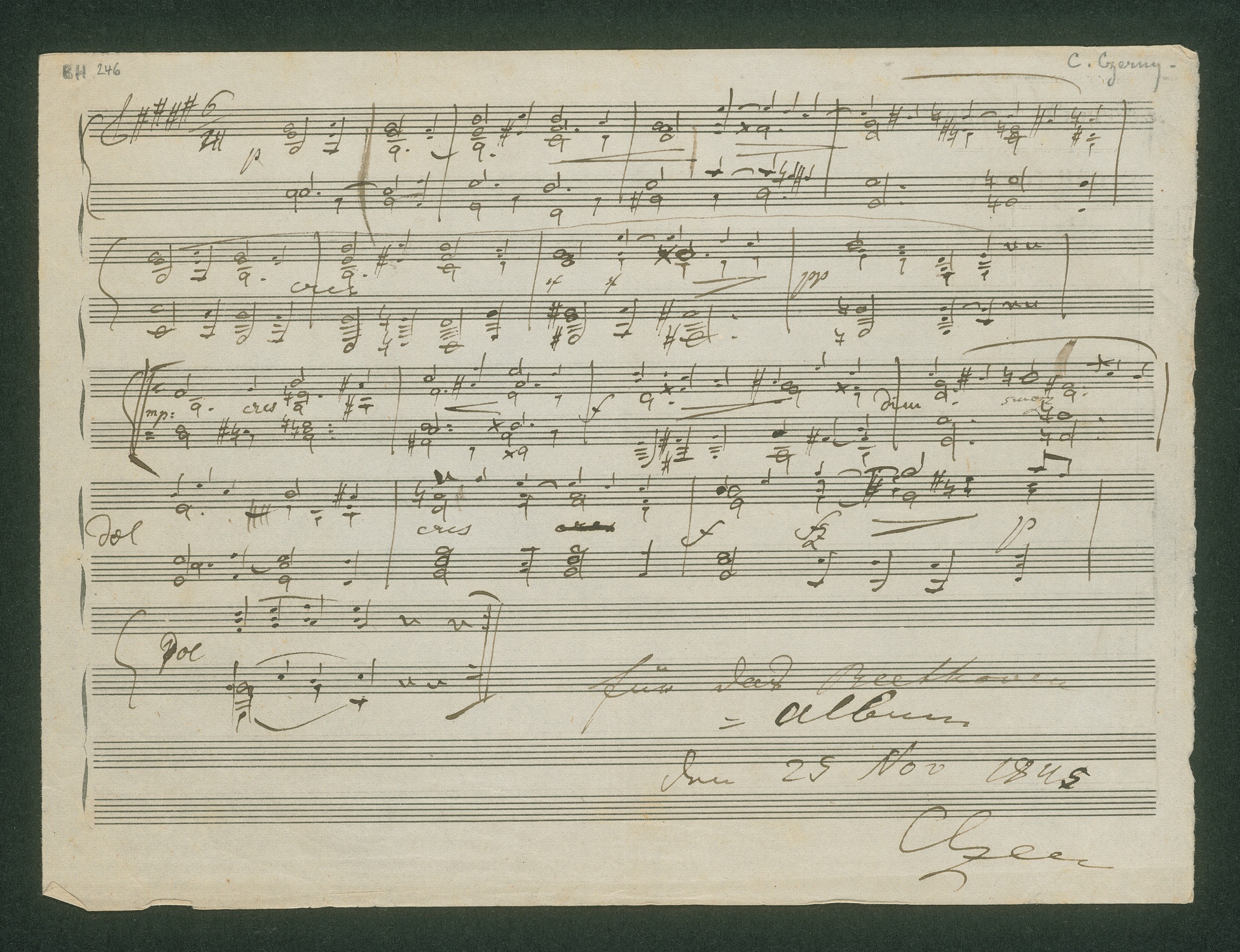 Carl Czerny, Andante religioso (E-Dur) für Klavier, Autograph, Stammbucheintrag