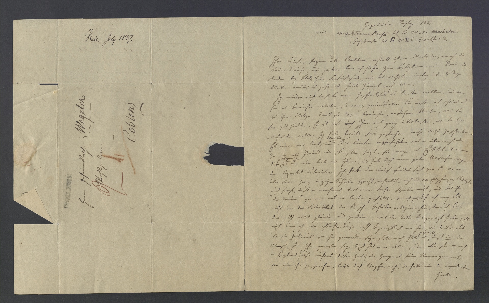 Ferdinand Ries, Brief an Franz Gerhard Wegeler in Koblenz, Ingelheim, Juli 1837, Autograph
