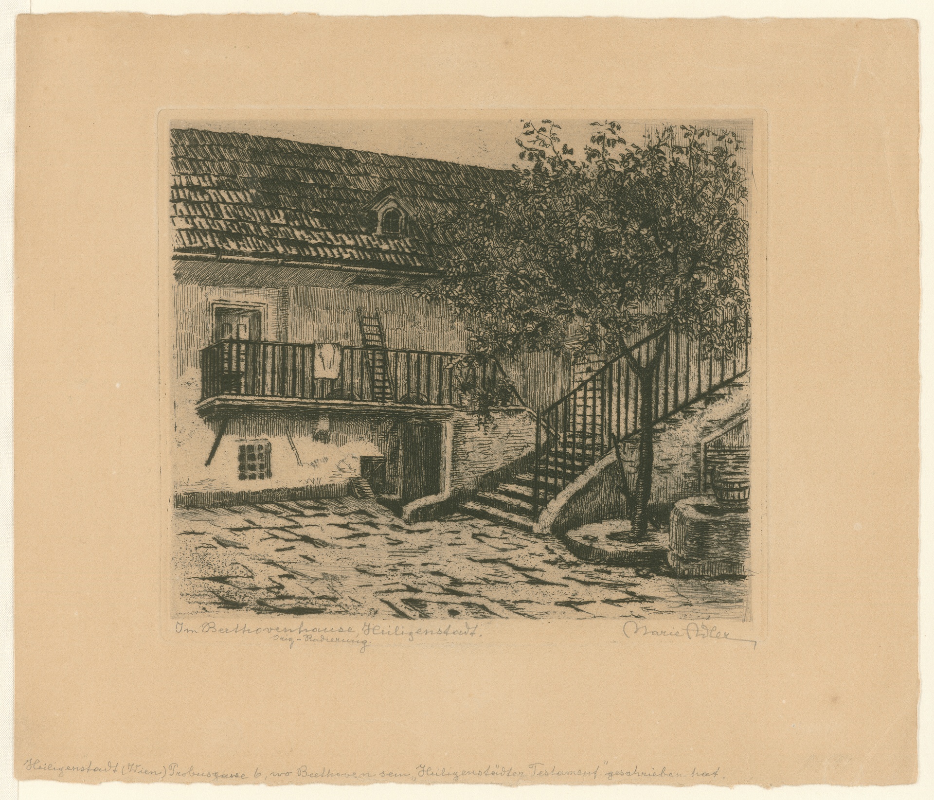 Wien, Heiligenstadt, Probusgasse 6, Wohnung von Ludwig van Beethoven, Hofansicht - Radierung von Maria Adler nach einer eigenen Zeichnung, Wien, vor 1927
