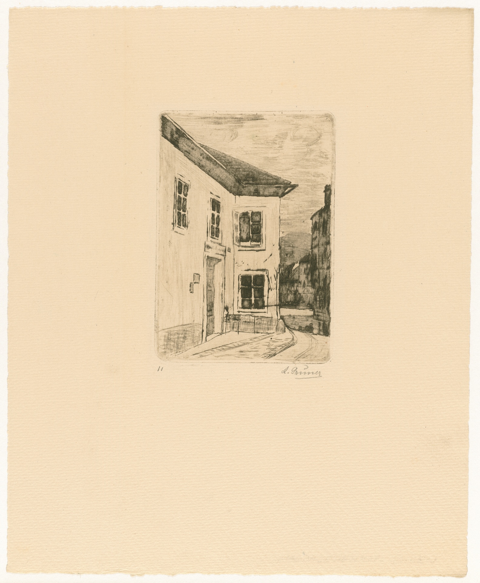 Baden, Frauengasse 10, Wohnung von Ludwig van Beethoven (Magdalenenhof), Außenansicht - Radierung von Lila Gruner nach einer eigenen Zeichnung, Wien, 1910